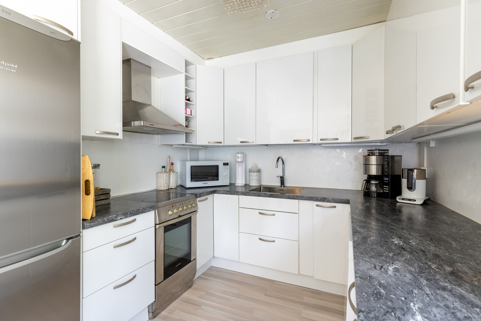 Moderni varustelu ja oma sauna: Keittiö remontoitu ja varusteltu nykyaikaisin kodinkonein. Asunnossa on oma sauna, joka tarjoaa luksusta arkeen. Lisäksi säilytystilaa löytyy mukavasti mm. vaatehuoneen ansiosta.