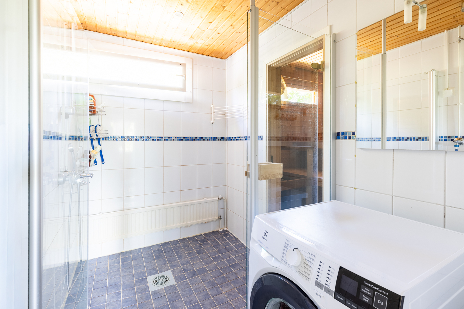 | Kylpyhuoneen kuvaus | Suihku, peili ja pesukoneliitäntä, seinät (kaakeli), lattiat (laatta) |