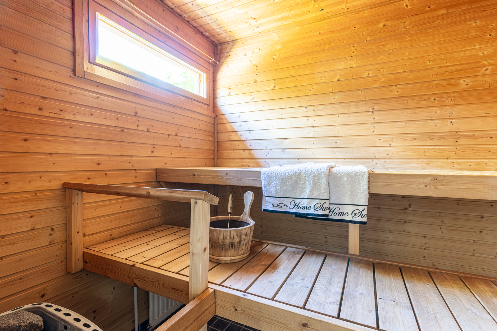 | Saunan kuvaus | Seinät (puu), lattiat (laatta), Sähkökiuas |
