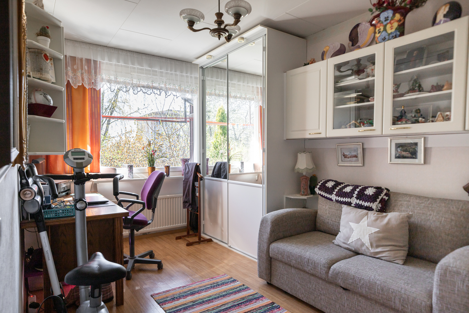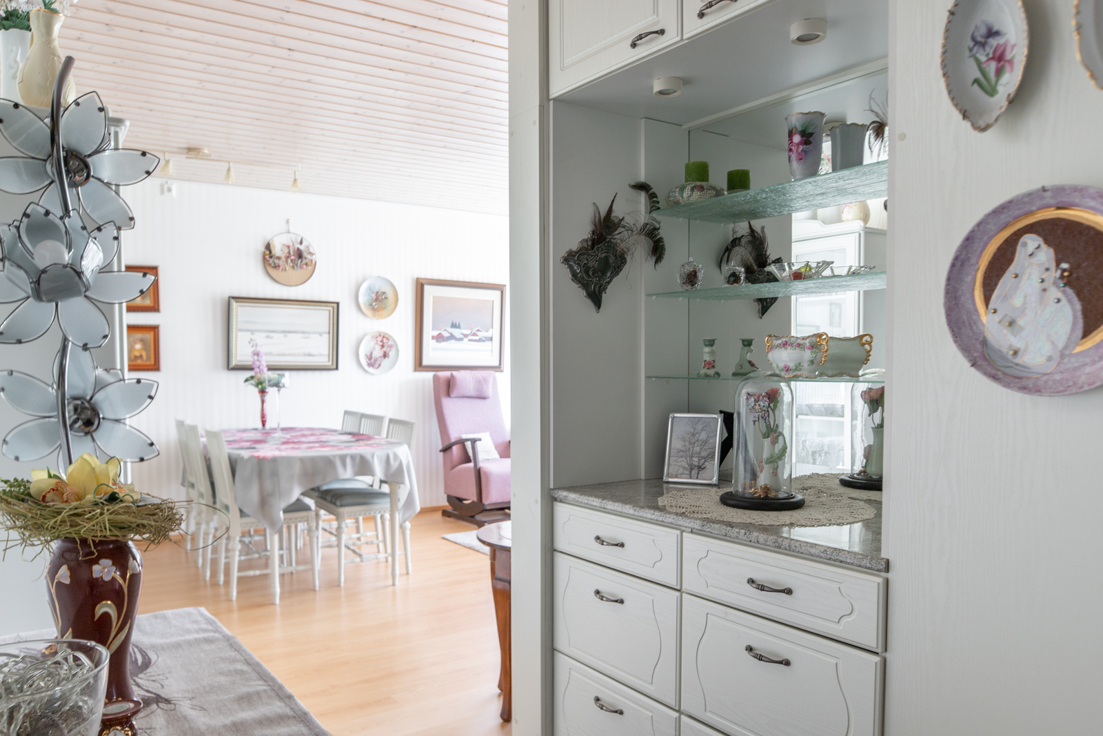 | Olohuoneen kuvaus | Seinät (tapetti), lattiat (laminaatti) |