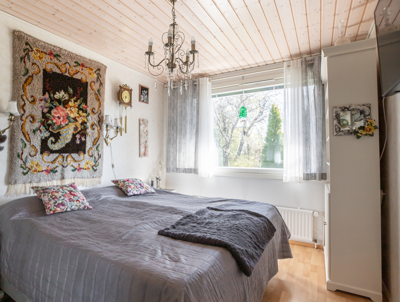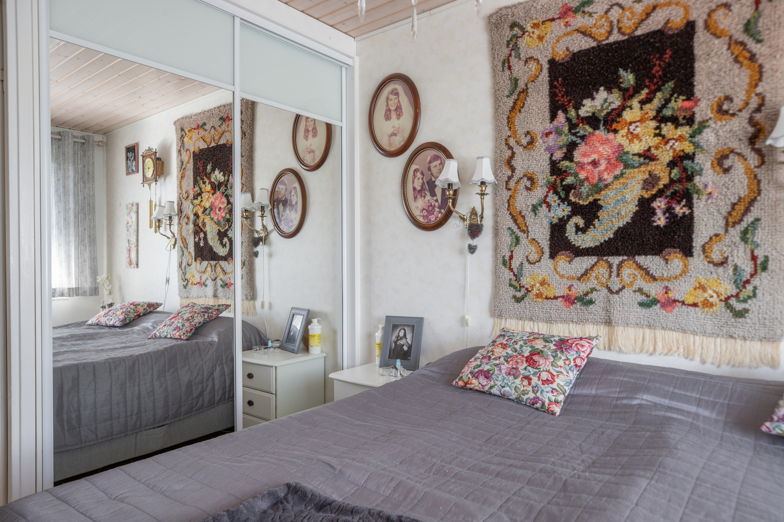 | Makuuhuoneen kuvaus | Lukumäärä: 3, seinät (tapetti), lattiat (laminaatti ja muovimatto) |