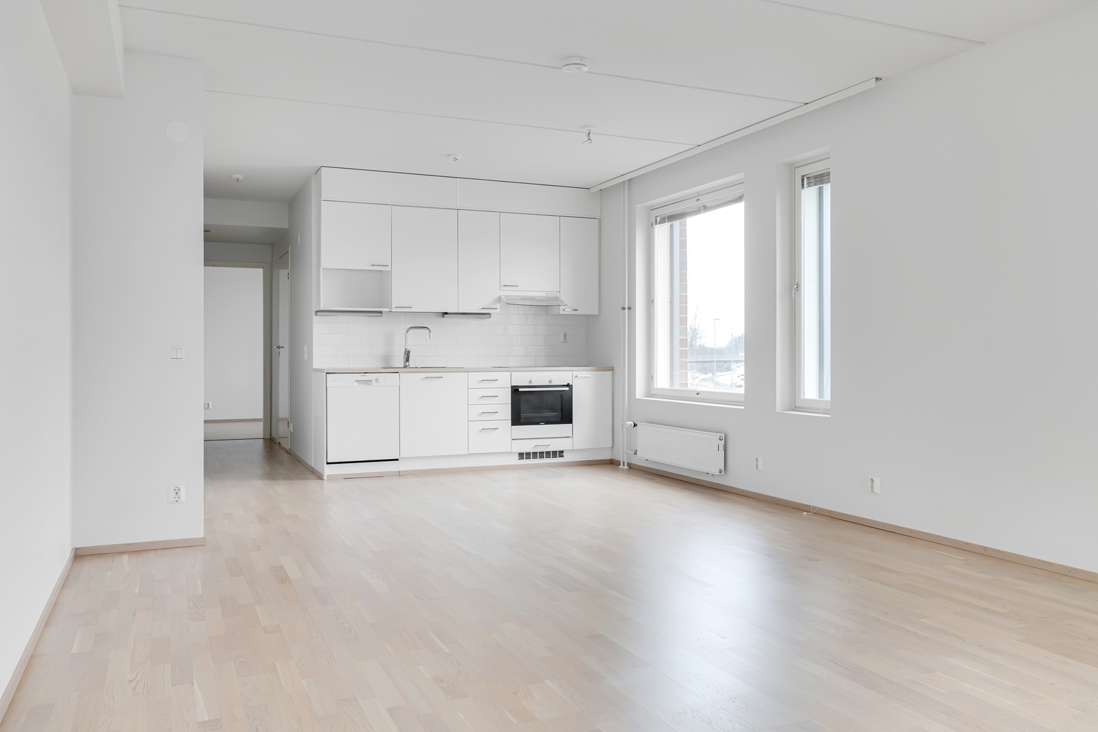 Tässä viihtyisässä kaksiossa yhdistyvät toimivuus ja moderni ilme täydellisesti. Asunnon avara pohjaratkaisu tarjoaa valoa ja tilan tuntua, ja kauniit vaaleat pinnat keittiössä luovat raikkaan ja kutsuvan tunnelman. Olohuone on tilava ja avara, ja makuuhuone on mukavan kokoinen. Lasitettu parveke tuo lisätilaa ja tarjoaa rauhalliset näkymät pientaloalueelle.