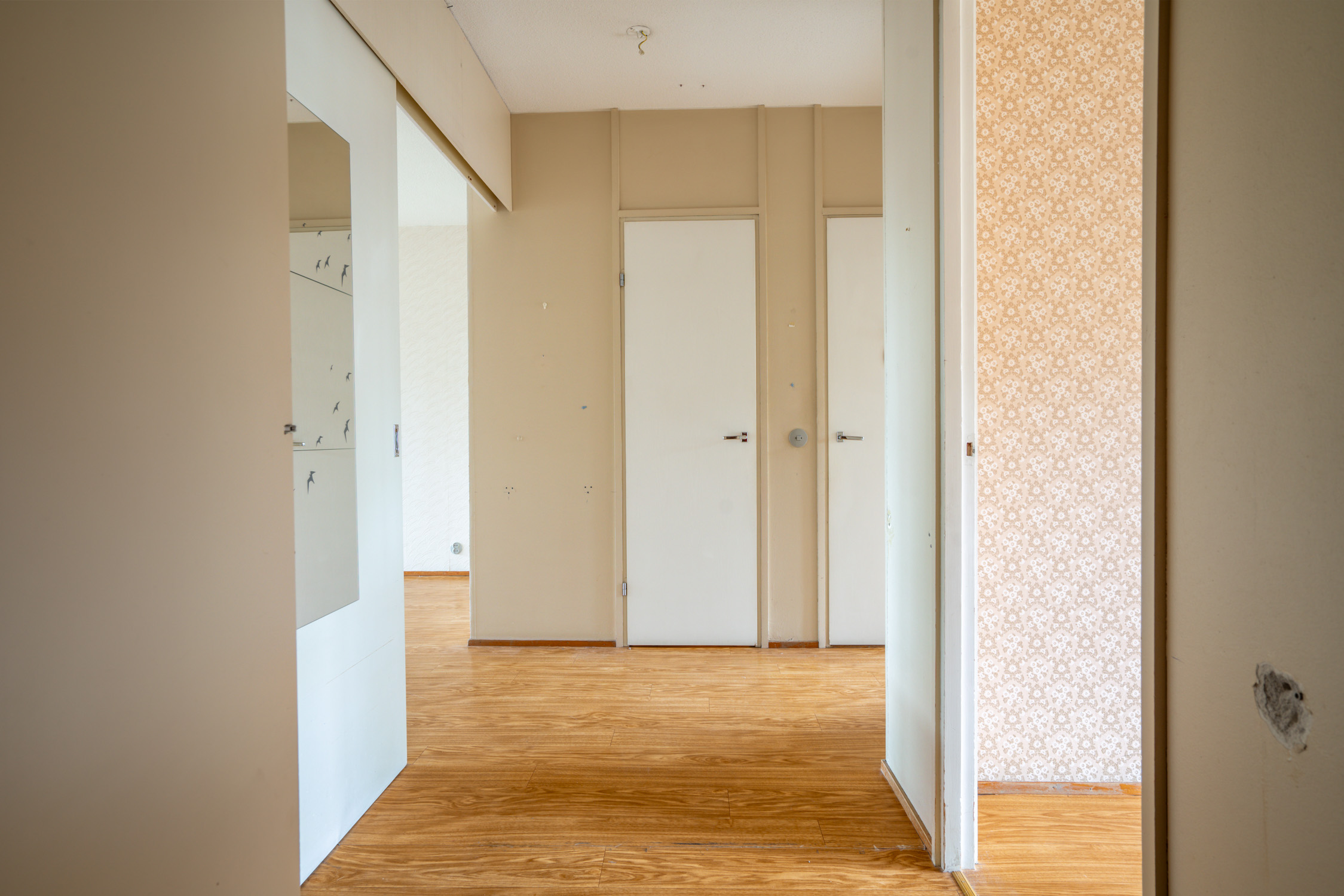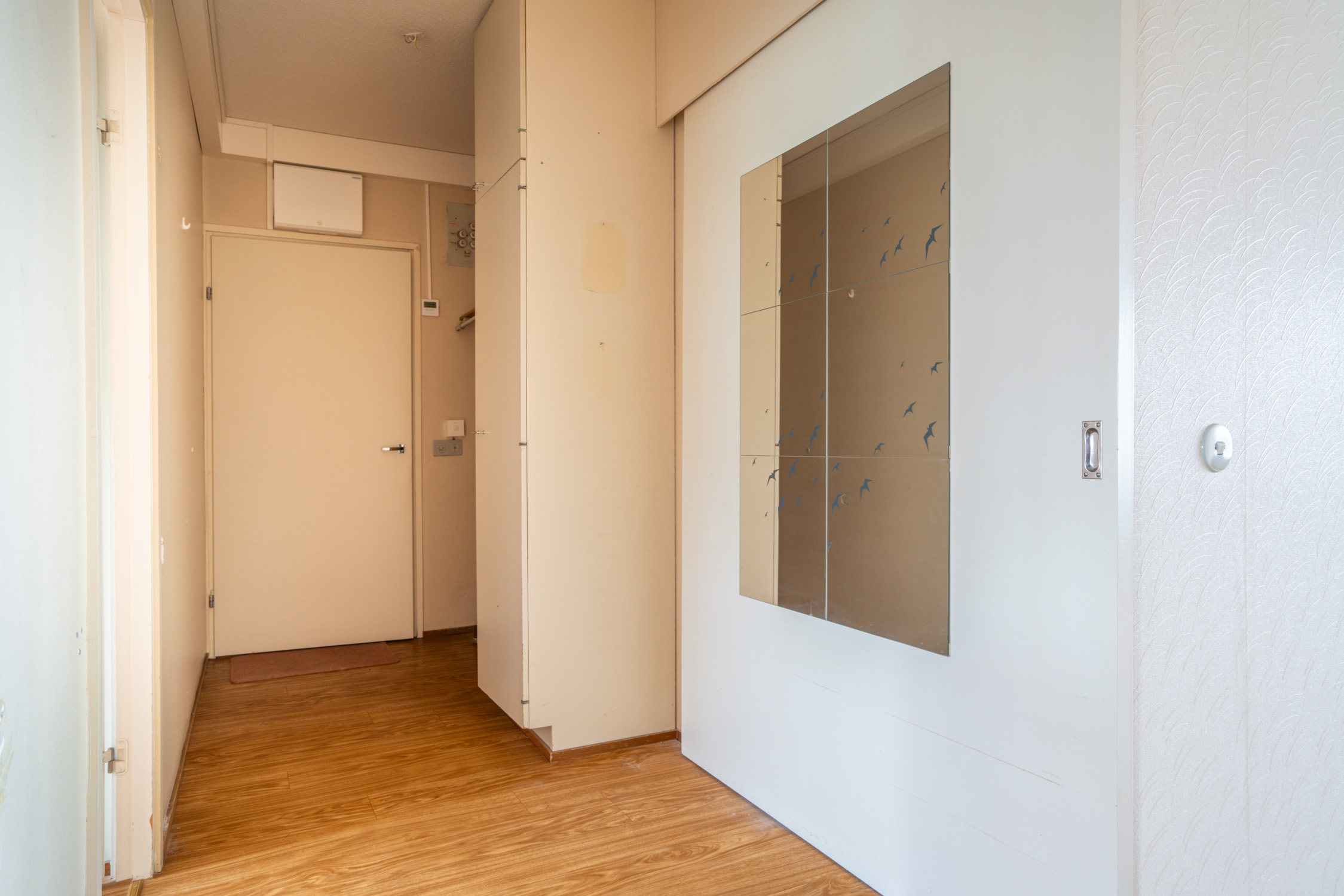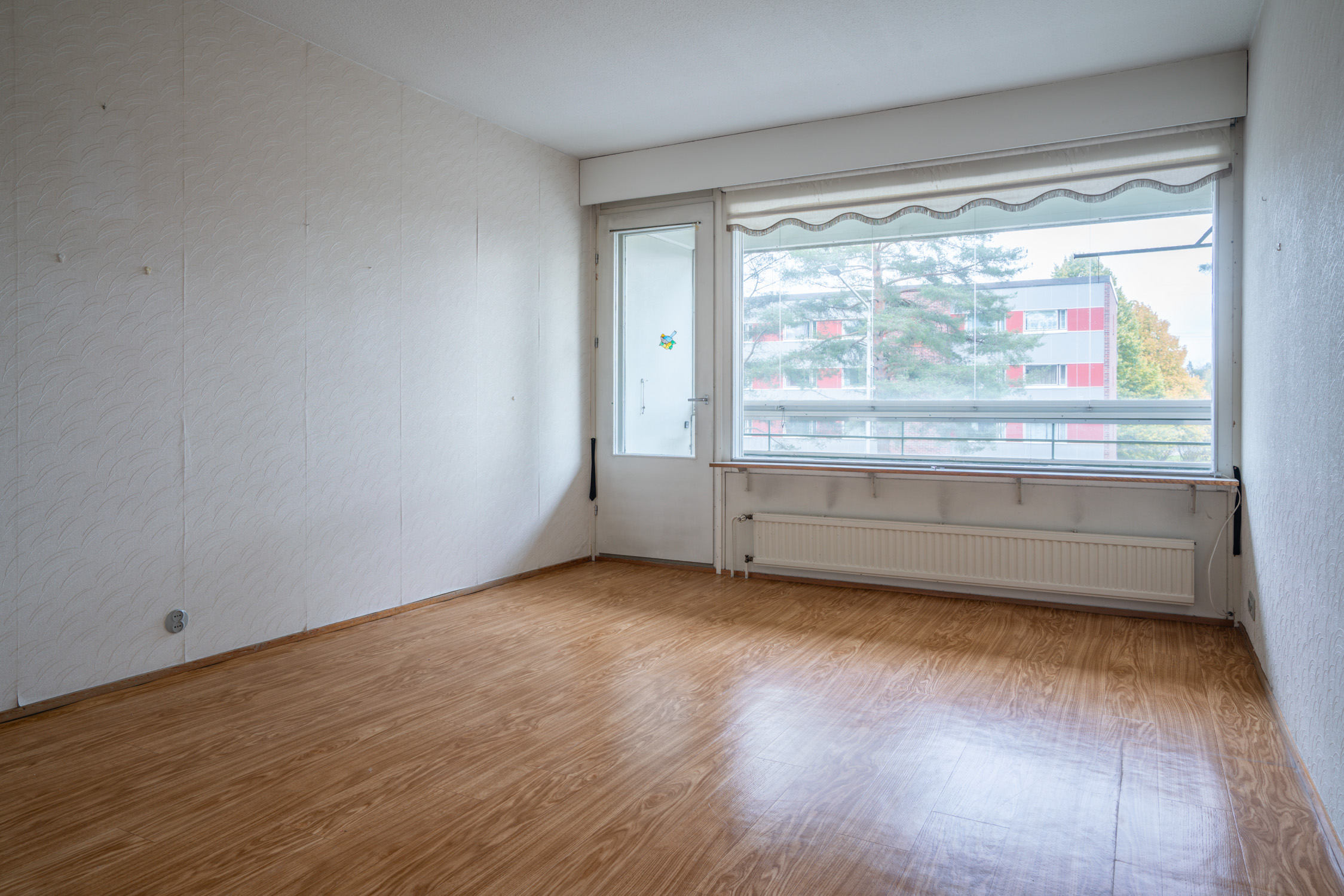 Seinät (maali ja tapetti), lattiat (muovimatto) |
