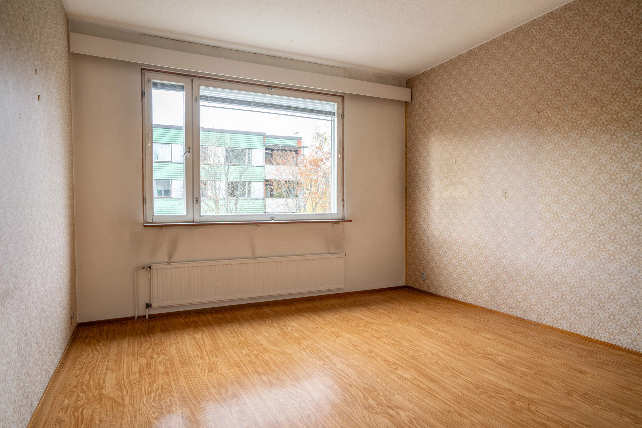 Lukumäärä: 1, seinät (tapetti ja maali), lattiat (muovimatto) |