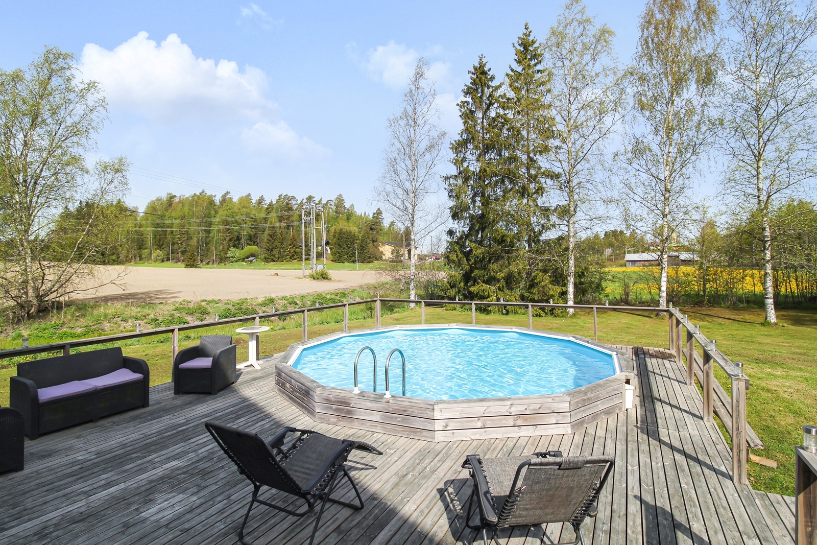 Talon päädyssä on suuri terassialue jossa on suuri 25 m3 kokoinen uima-allas.
