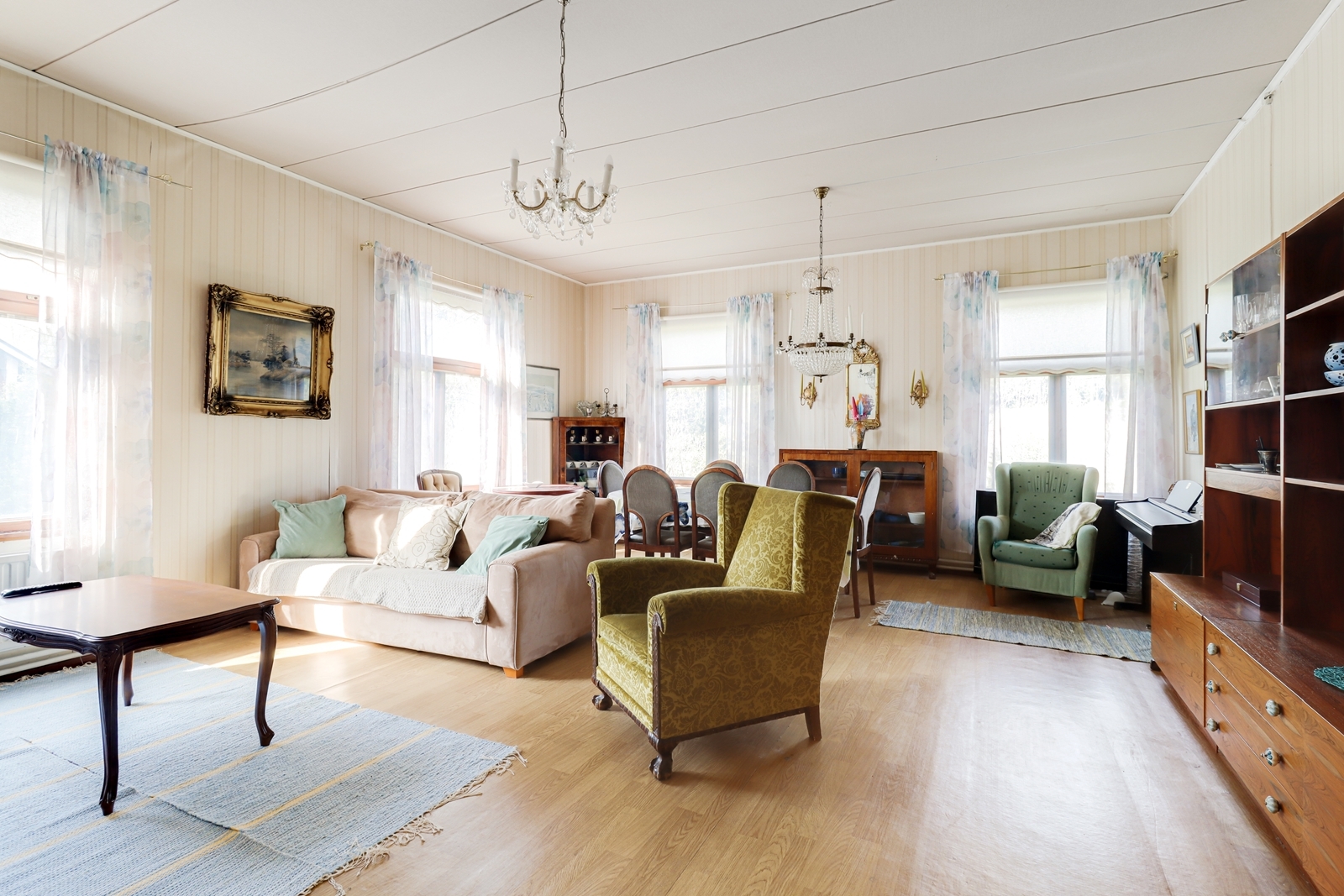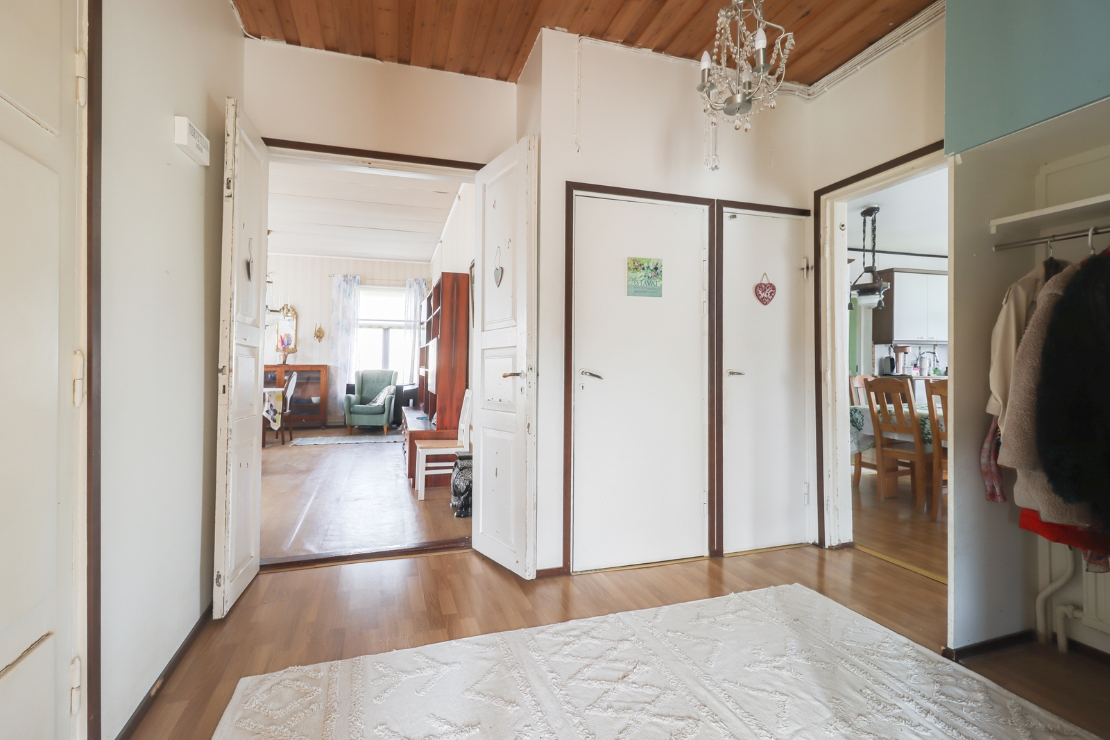 Sisäänkäyntiveranta ja porrastila on rakennettu 1980-luvulla, yläkerran ikkunat vaihdettu 6-7 vuotta sitten, alakerran ikkunat vaihdettu noin 30 vuotta sitten sähköt ja käyttövesiputket uusittu 2013 (paitsi sali), talon julkisivut maalattu 2023 ja peltikatto noin 2010, pesuhuone ja sauna uusittu noin 10 vuotta sitten, sadevesiohjaus syöksytorvien alle asennettu ja öljylämmityksen öljysäiliö poistettu 2025 |