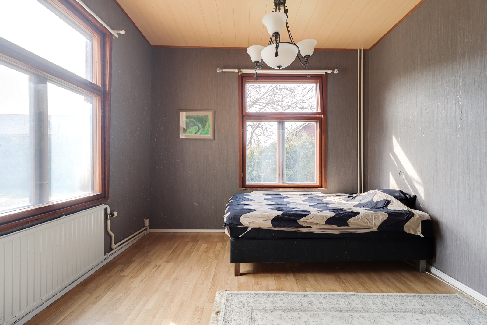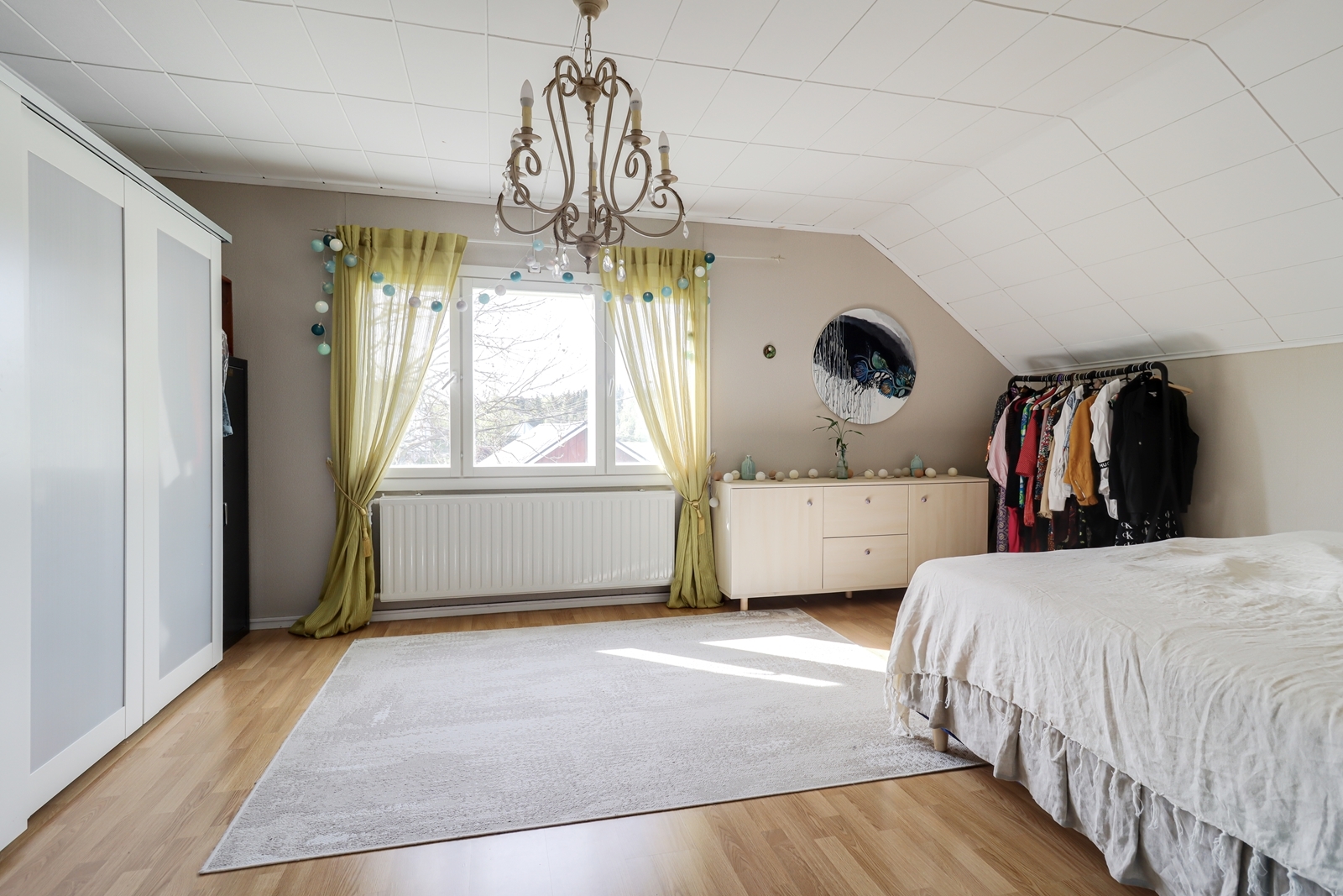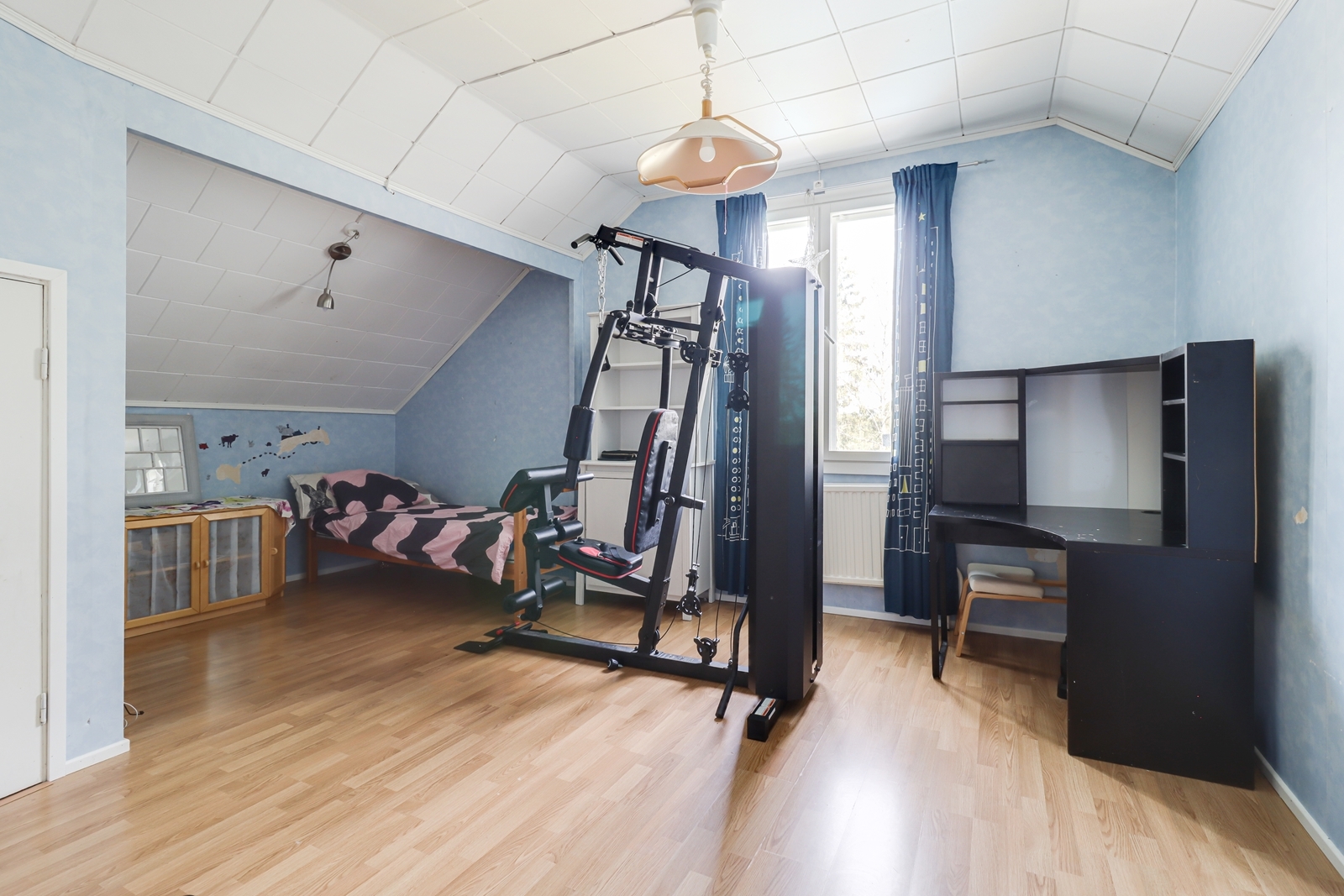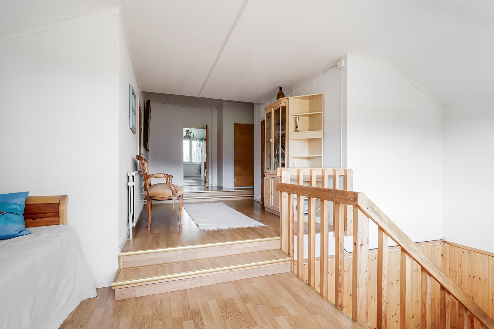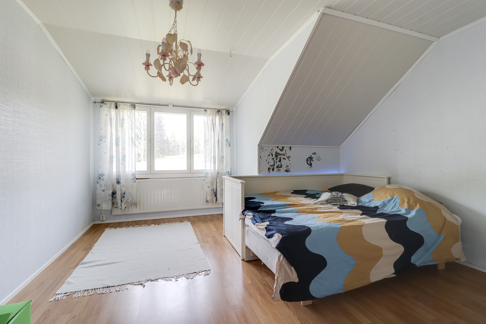 Yläkerrassa on kolme tilavaa huonetta, aulatila ja pieni työ-/toimistohuone.