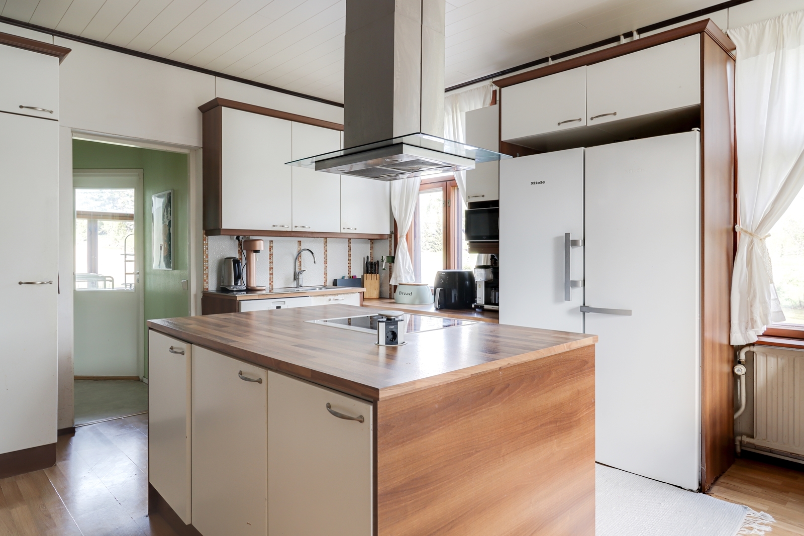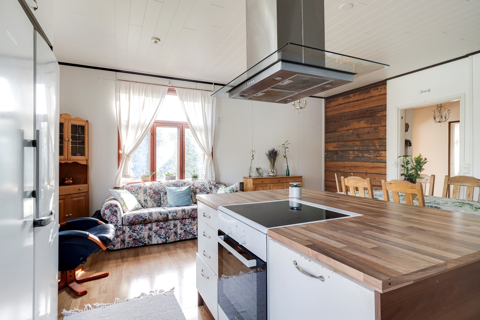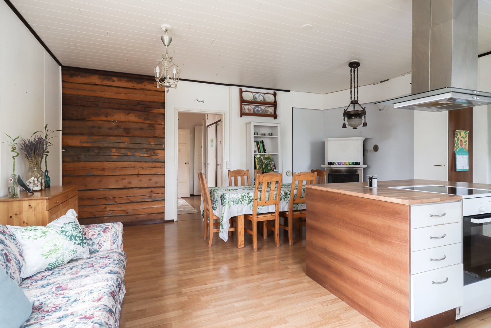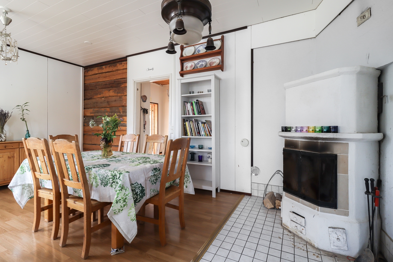 Keittiössä takka ja yhdessä makuuhuoneessa Porinmatti-kamina.