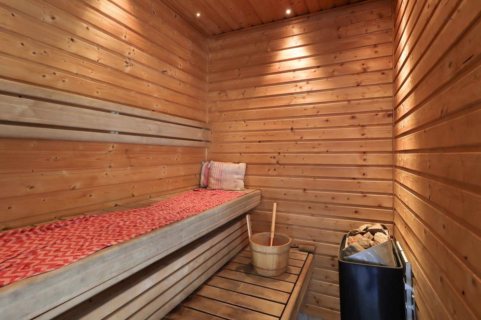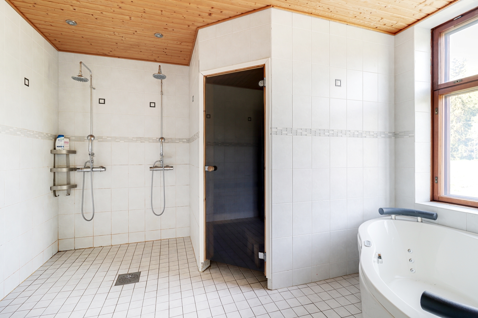 Talon alakerrassa on sali, yksi huone, suuri keittiö ja saunaosasto pukuhuoneineen.