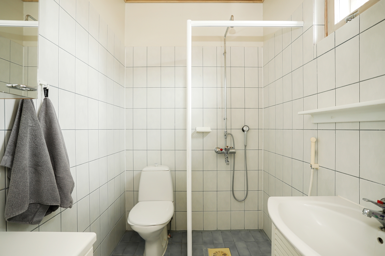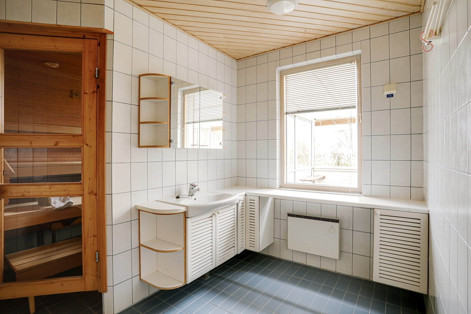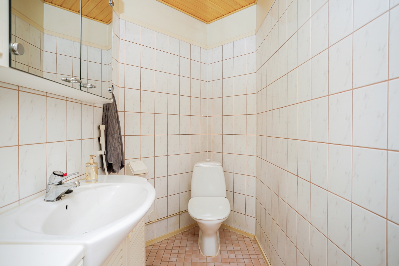| Kylpyhuoneen kuvaus | Allaskaappi, wc-istuin, lattialämmitys, suihku ja kiinteät valaisimet, seinät (kaakeli), lattiat (laatta), Saunaosasto/kph sekä erillinen kph/wc ja erillinen wc. |