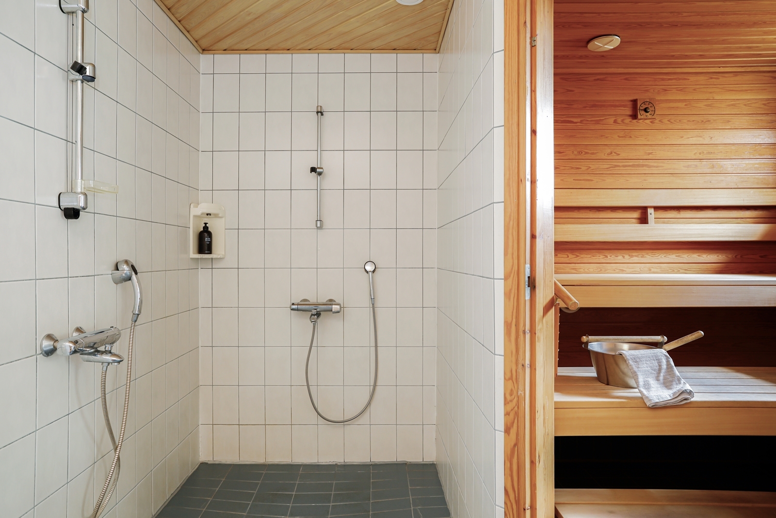 | Saunan kuvaus | Seinät (puu), lattiat (laatta), Sähkökiuas |