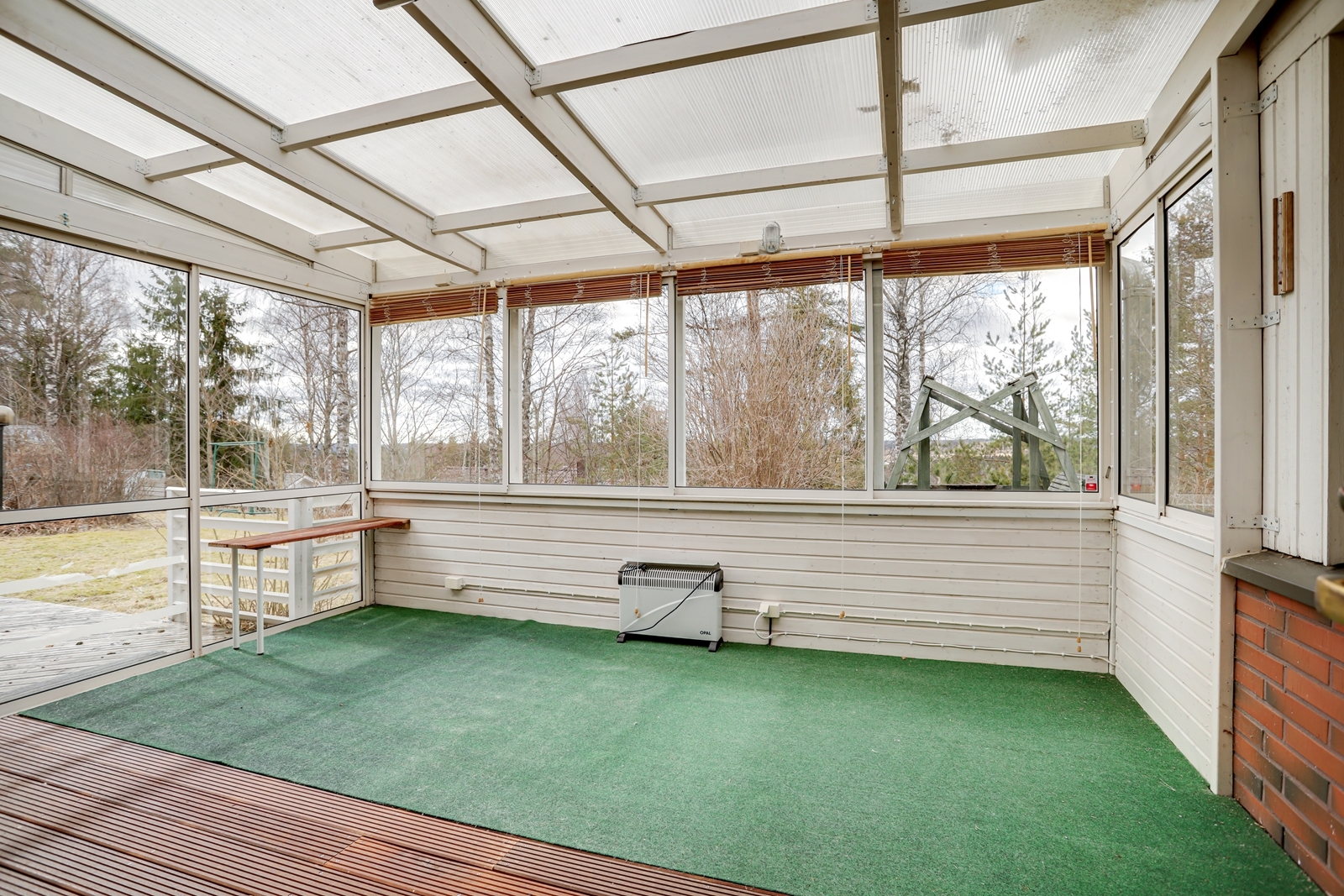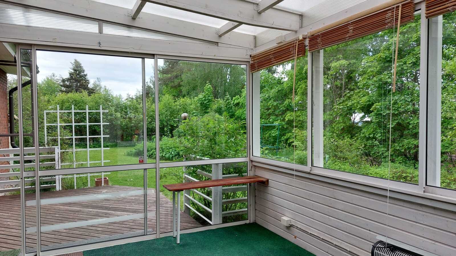 | Muuta kauppaan kuuluvaa | Hälytysjärjestelmän laitteet jäävät (sis.vesivahdin),uusi omistaja tekee mahdollisen sopimuksen Verisuren kanssa. Pihakeinu, lehtikompostorit ruohonleikkuri. Lisätietoja sisältyvistä varusteista: hälytys- /valvontajärjestelmä, ilmalämpöpumppu, istutukset, jätesäiliö, kaapistot, keskuspölynimuri, kiinteät valaisimet, kuivauskaappi/-rumpu, lämminvesivaraaja, matontamppausteline, naulakko, parveke-/terassilasitus, pyykinkuivausteline, sälekaihtimet/rullaverhot, verhotangot. |