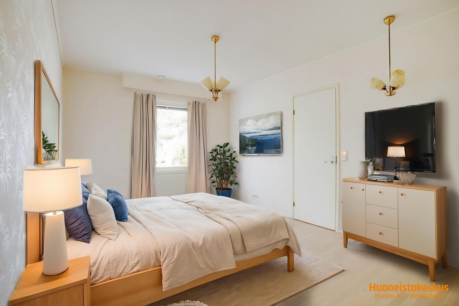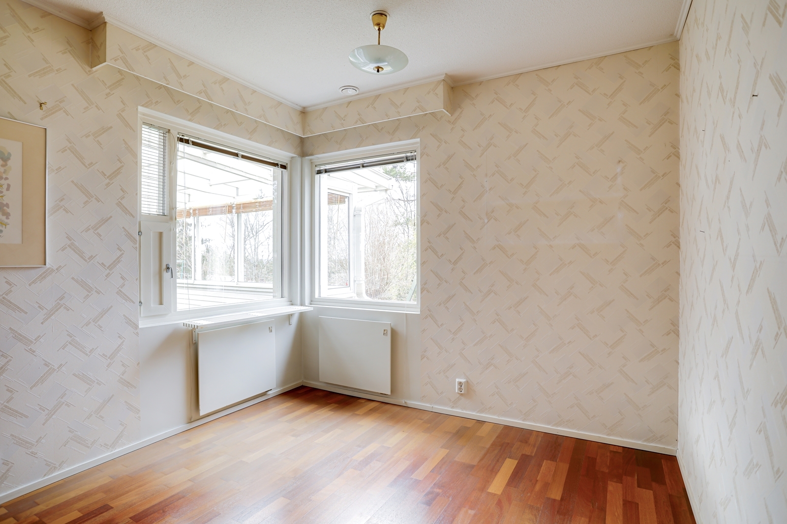 | Makuuhuoneen kuvaus | Lukumäärä: 2, seinät (tapetti ja maali), lattiat (parketti), Tammiparketti (hiomisvara) |