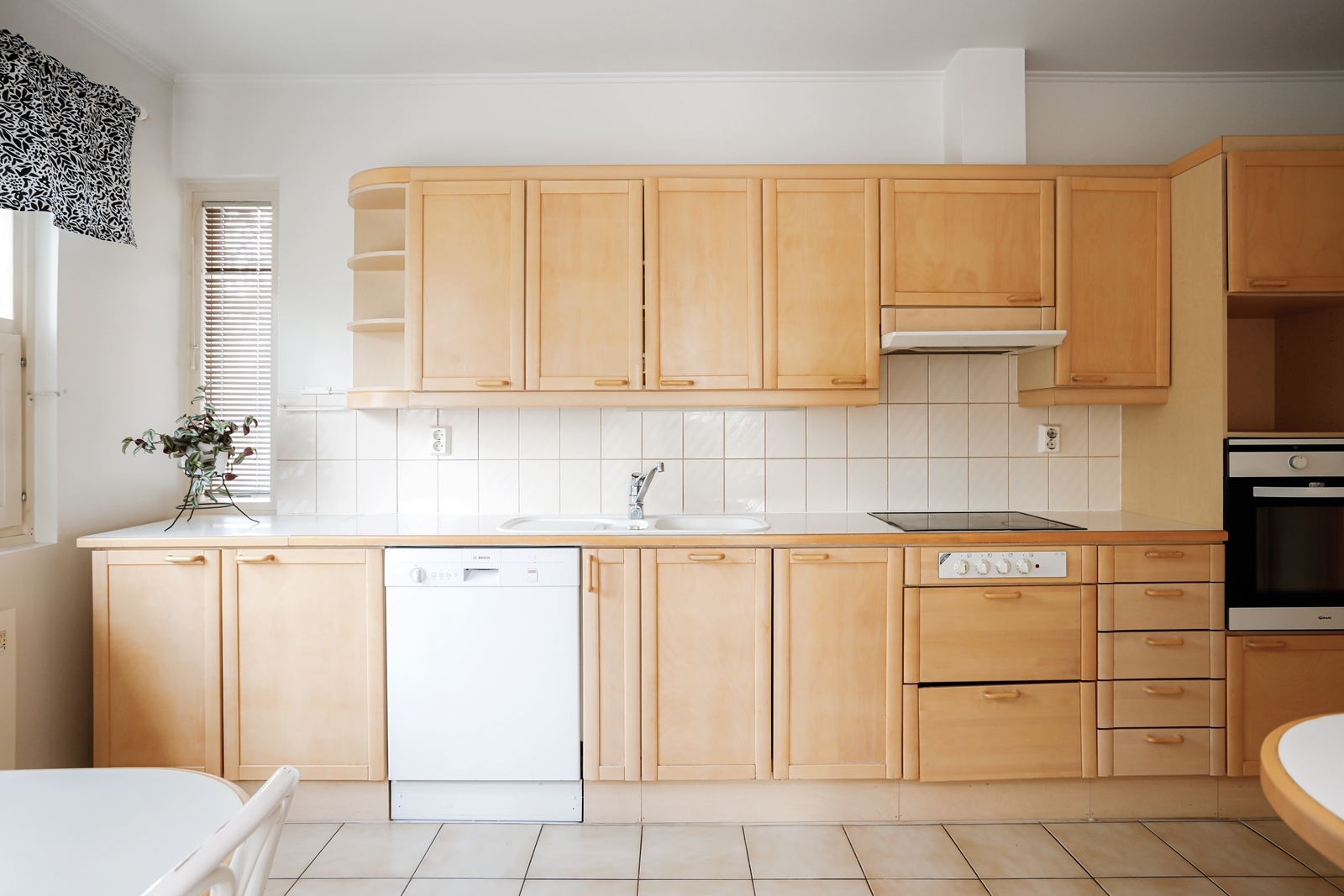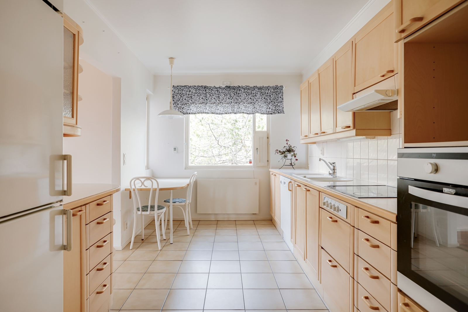 | Keittiön kuvaus | Liesi (Keraaminen liesi ja erillisuuni), seinät (laatta ja lasikuitutapetti), lattiat (laatta), erillisuuni, jääkaappipakastin, jääkaappi, astianpesukone ja liesituuletin / hormi, kiinteät valaisimet, Kylmäkoneet alkuperäiset, apk ja erillisuuni v.2018. |
