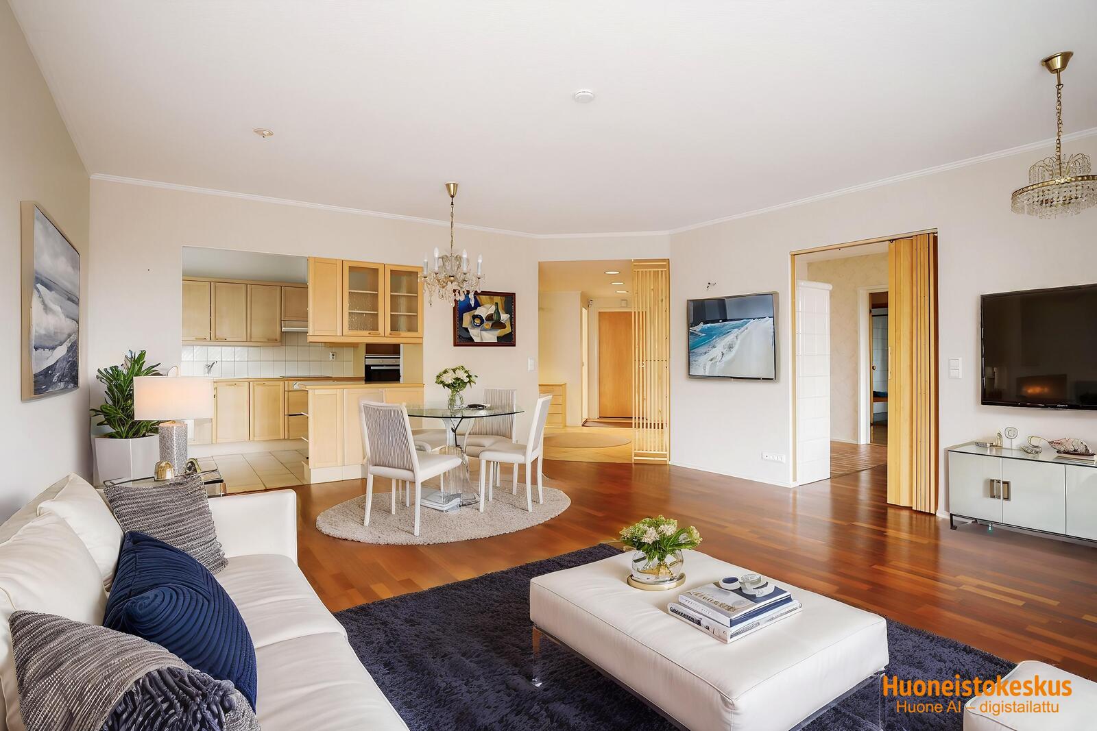 Todella suuri olohuone,makuuhuoneita on kaksi sekä takkahuone. Toisessa makuuhuoneessa oma kylpyhuone.