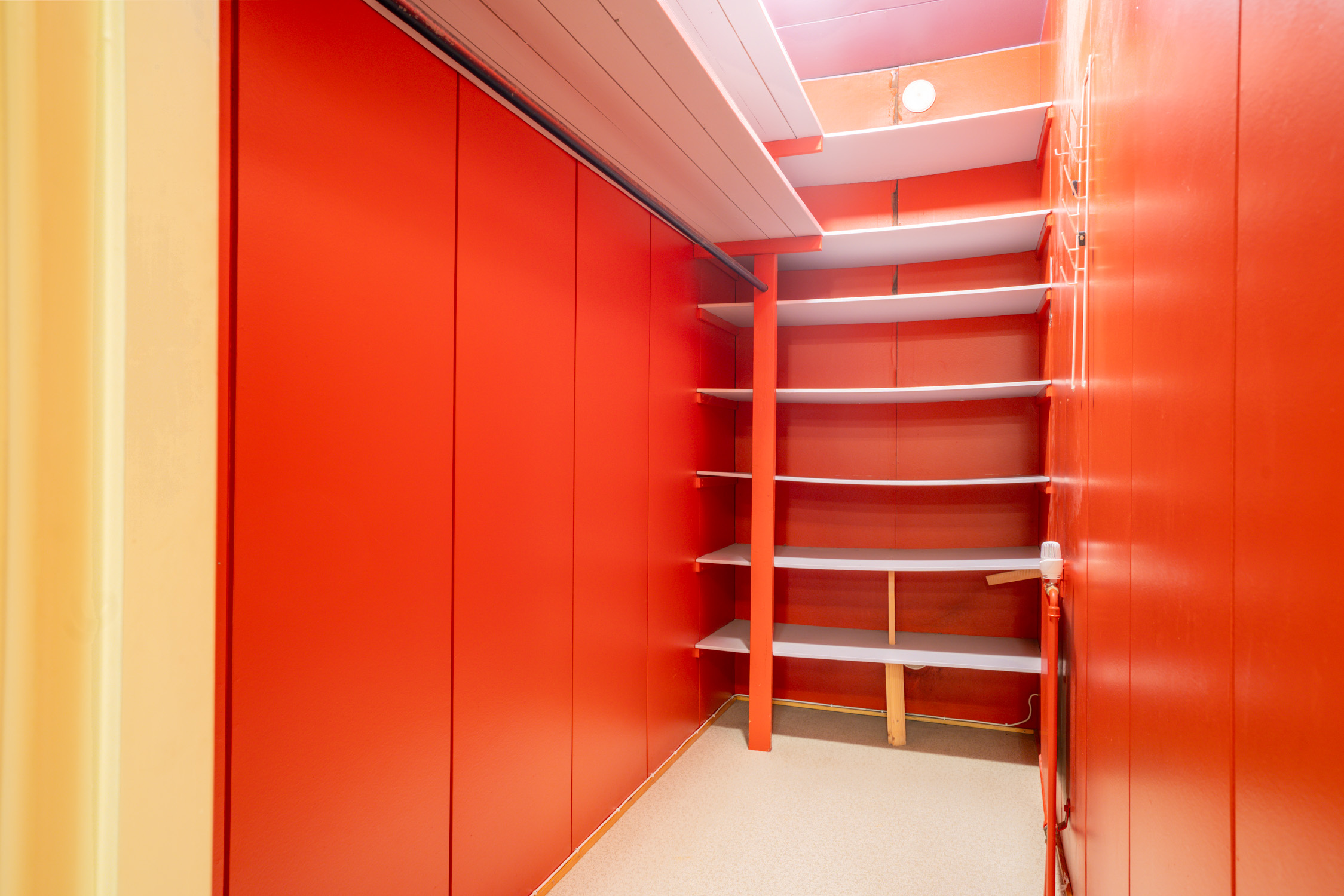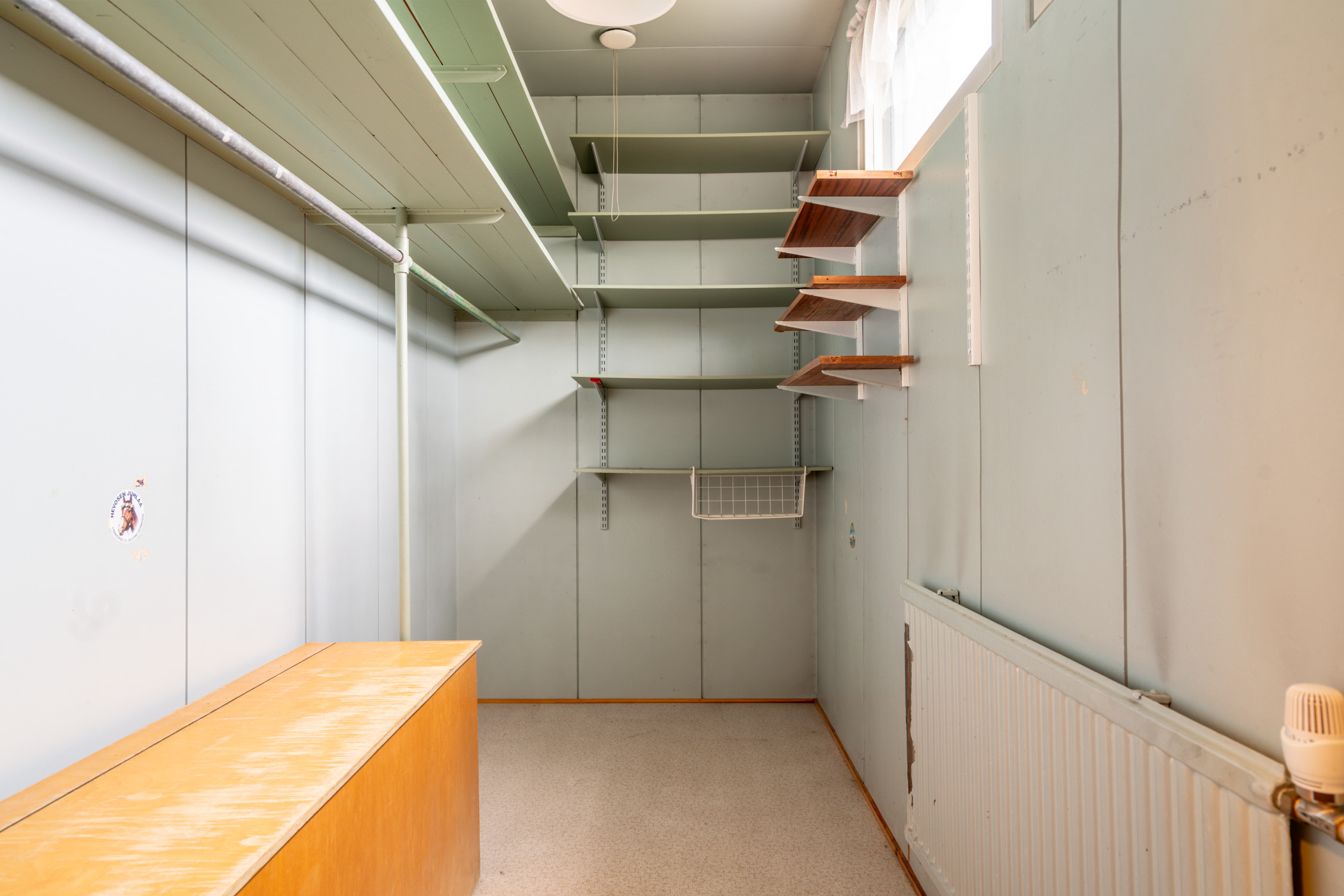 Vaatehuone, kaapistot ja erillinen varastohuone |