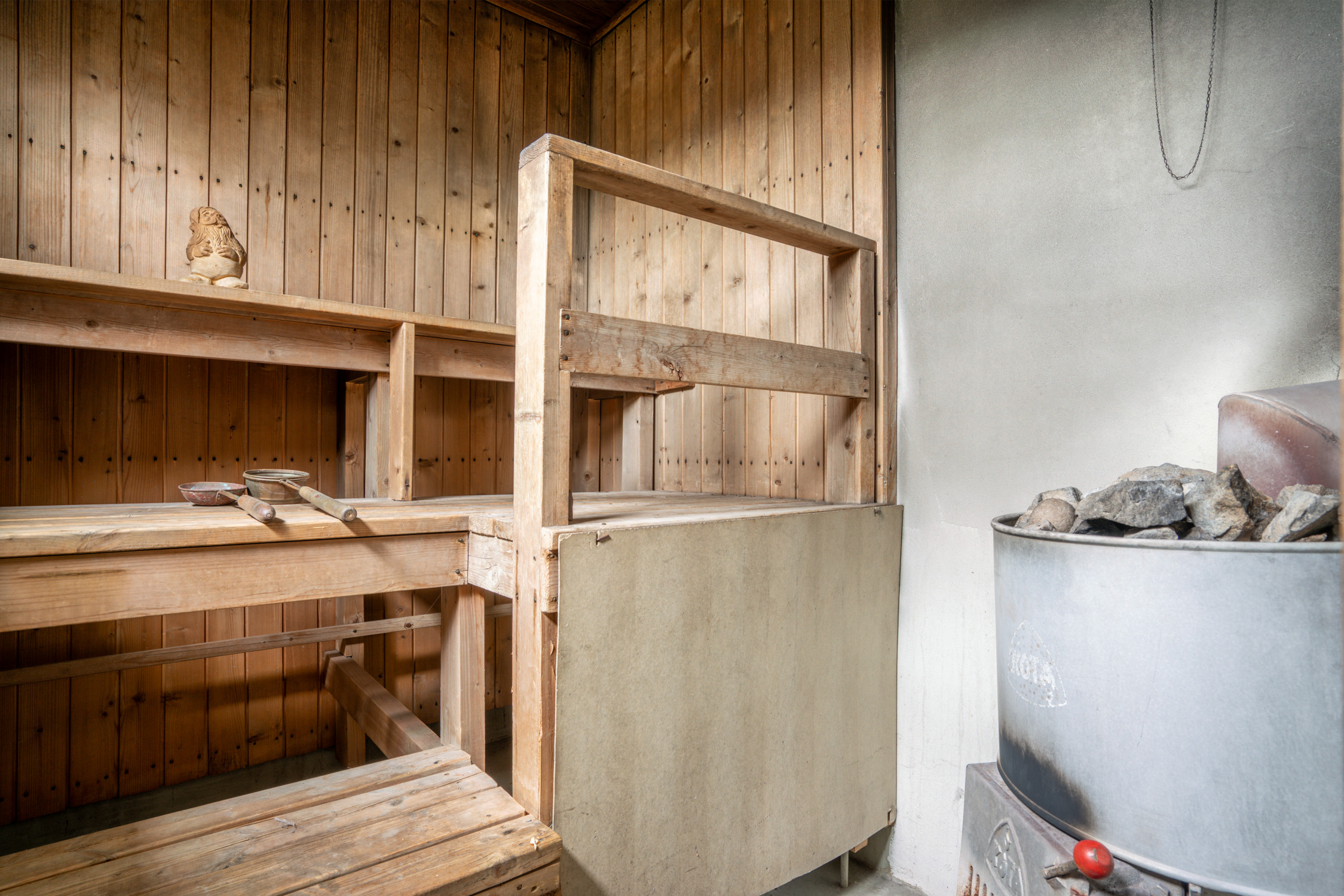 Seinät (paneeli), lattiat (betoni), Puukiuas |