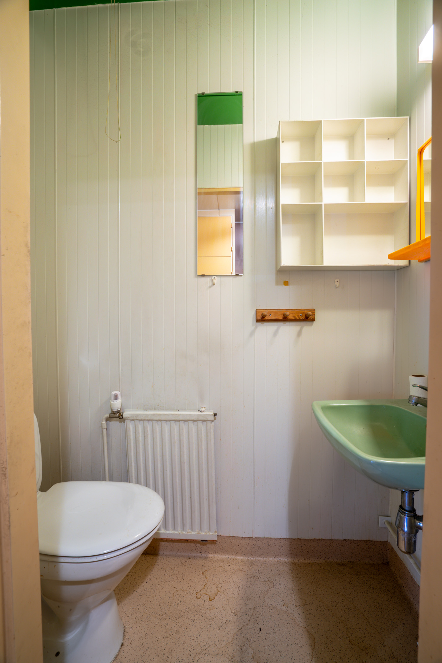 Lukumäärä: 1, WC-istuin, peili ja pesuallas, seinät (Seinäpaneeli), lattiat (Muovimatto) |