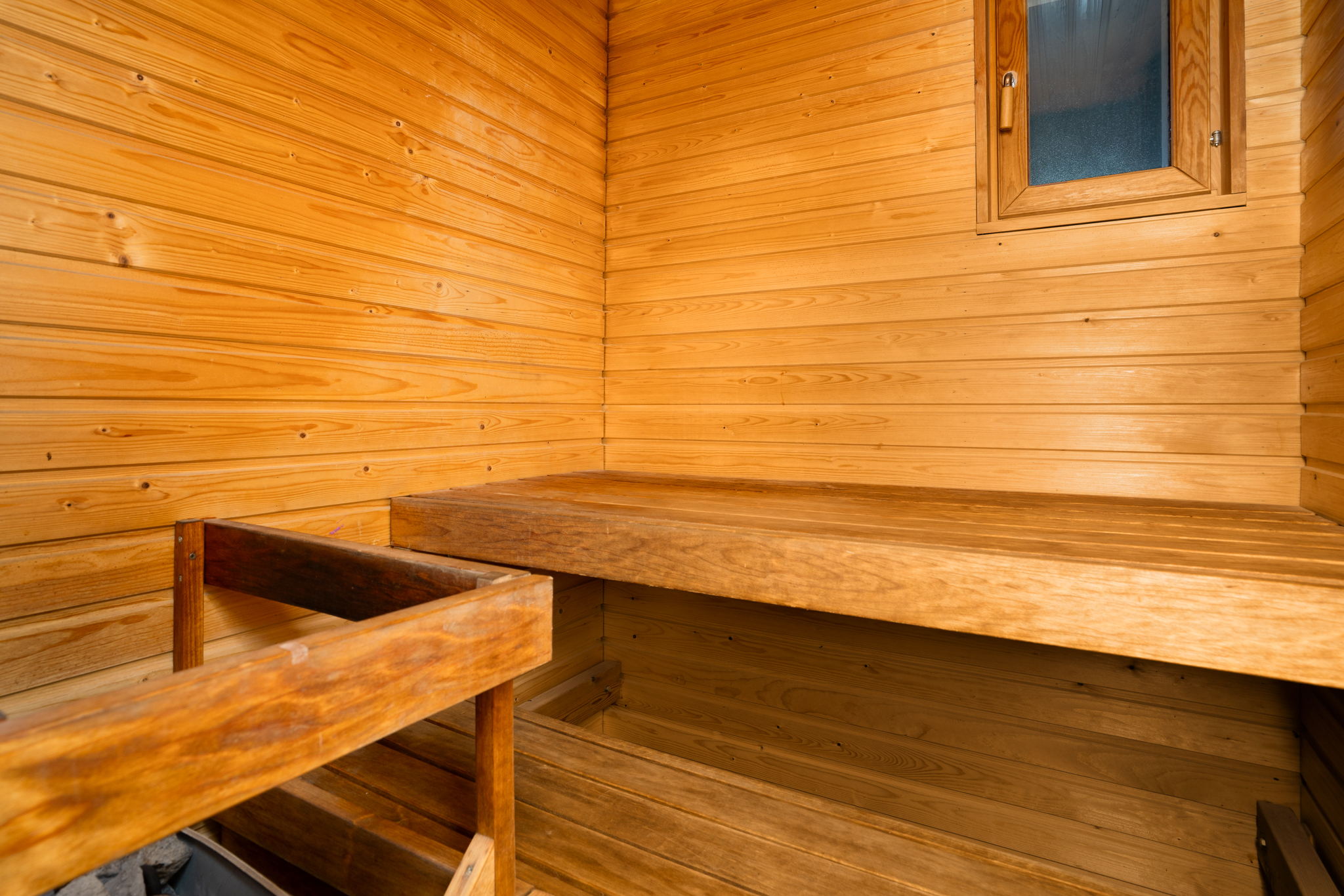 Seinät (puu), lattiat (laatta), Sähkökiuas, Ikkunallinen sauna |