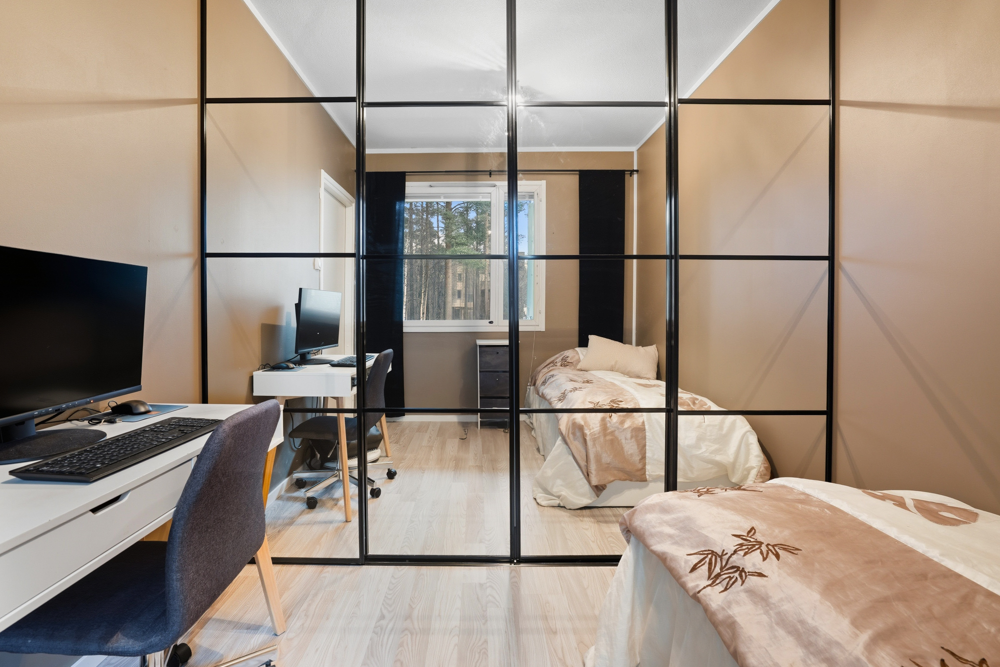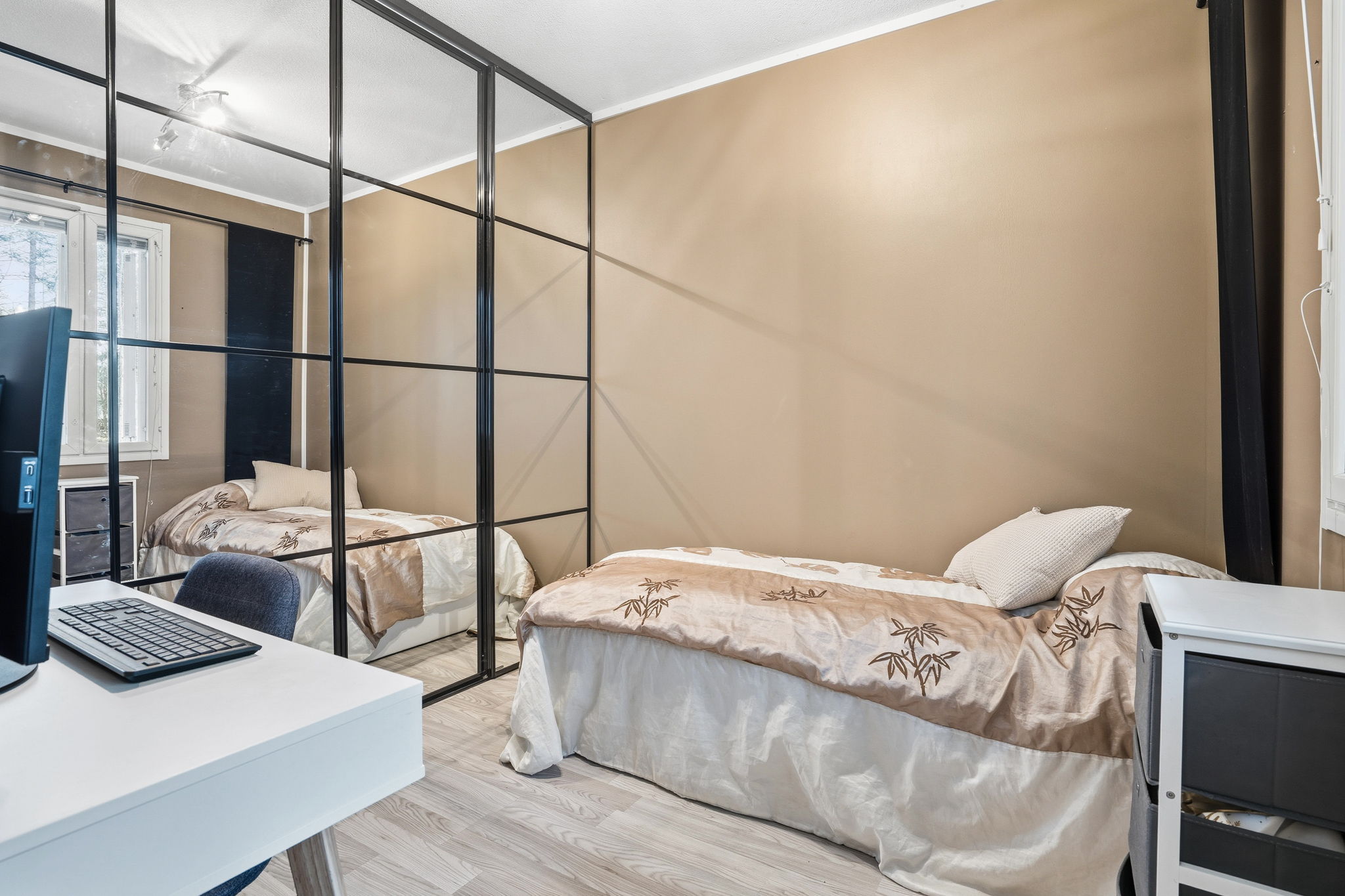 Lukumäärä: 1, seinät (maali), lattiat (laminaatti), Makuuhuoneessa suuret liukuovelliset peilikaapistot. |