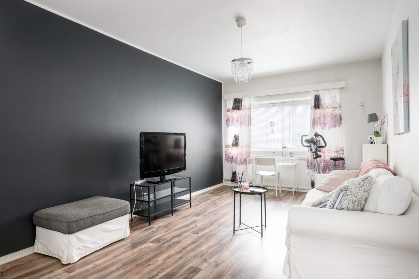 | Olohuoneen kuvaus | Seinät (maali), lattiat (laminaatti) |