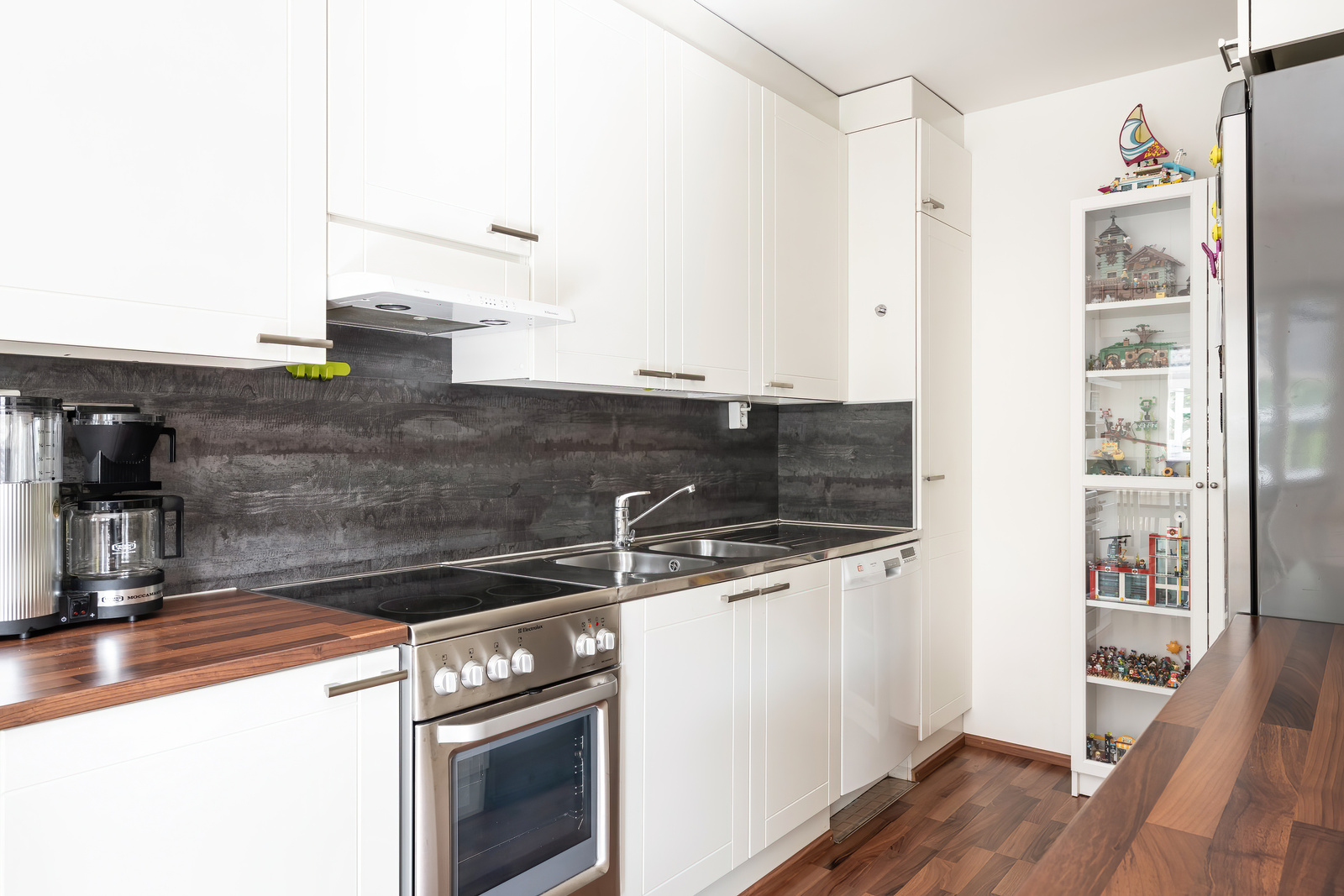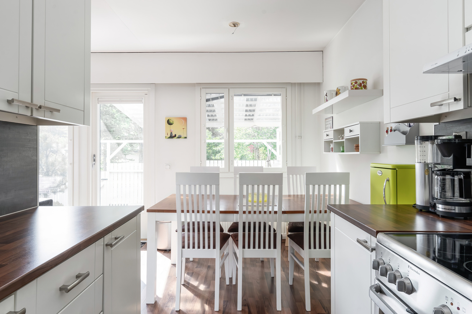 | Keittiön kuvaus | Liesi (Keraaminen liesi), työtasot (laminaatti), seinät (maali), lattiat (laminaatti), astianpesukone, liesituuletin, jääkaappipakastin ja kiinteät valaisimet |