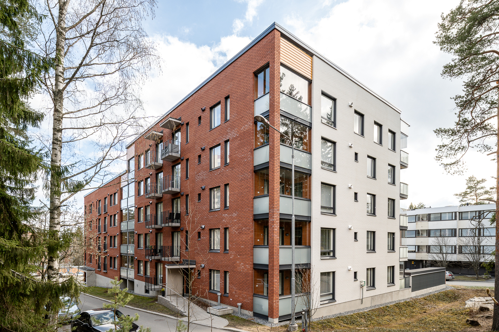 Tämä kompakti ja toimiva 51,5-neliöinen kolmio sijaitsee talon ensimmäisessä kerroksessa. Kodissa on kaksi makuuhuonetta, tilava vaatehuone sekä valoisa olohuone, josta on kauniit lasiovet parvekkeelle. Taloyhtiön asukkailla on myös käytössä viihtyisä oleskeluterassi.