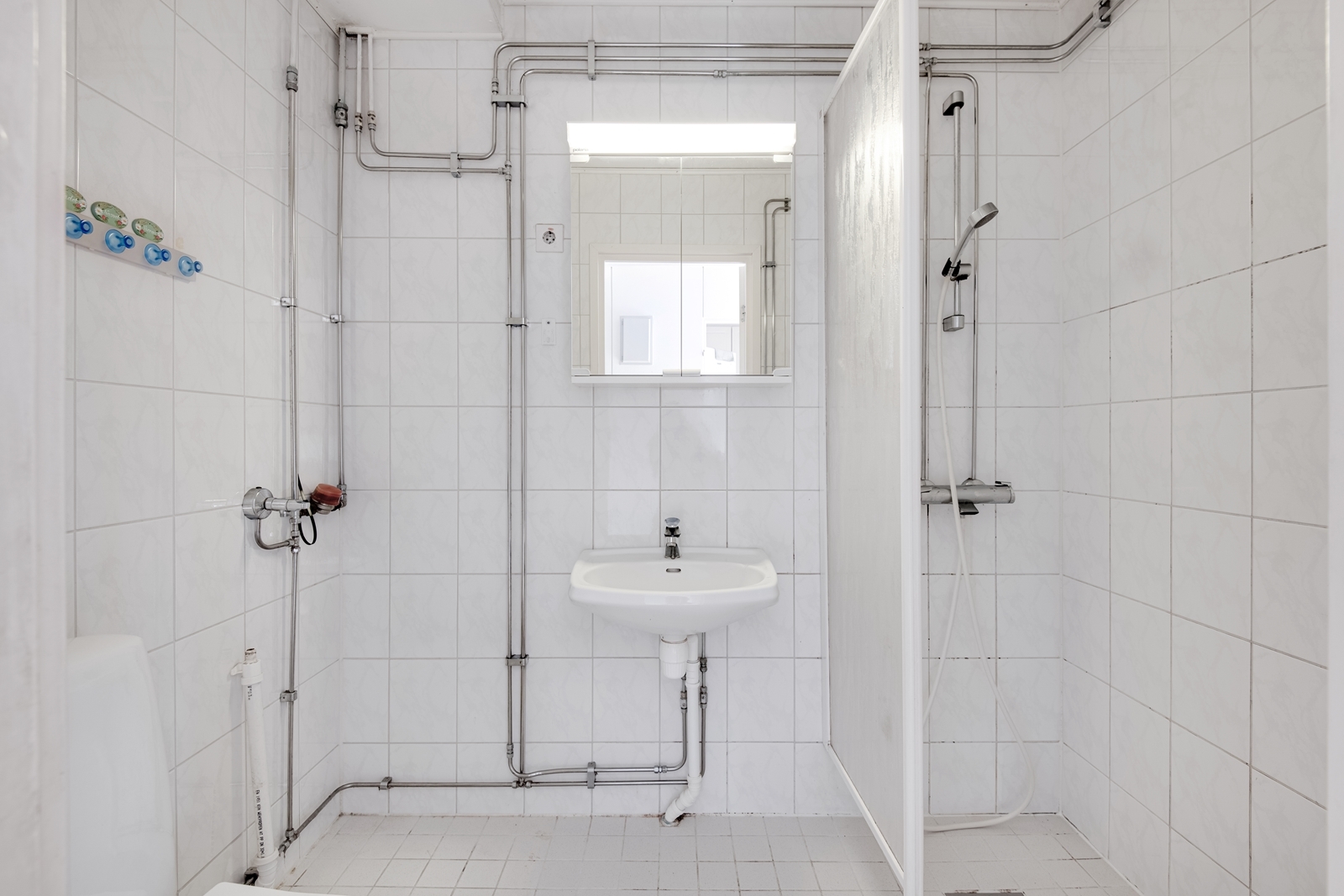 Pesukoneliitäntä, allaskaappi, suihku, peilikaappi, wc-istuin ja kiinteät valaisimet, seinät (kaakeli), lattiat (laatta) |