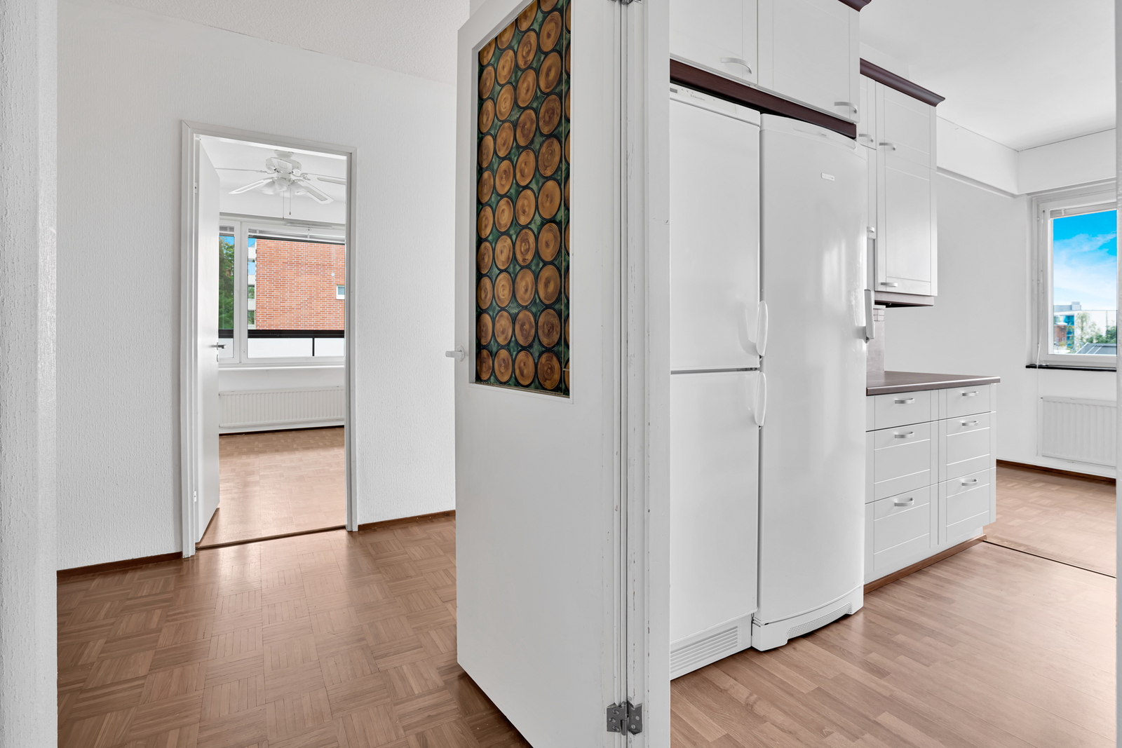Hissitalon 2. kerroksen, hulppea ja valoisa kulmahuoneisto hyvällä sijainnilla. Keittiö remontoitu 2011. Iso lasitettu parveke puistonäkymin. Heti vapaa.