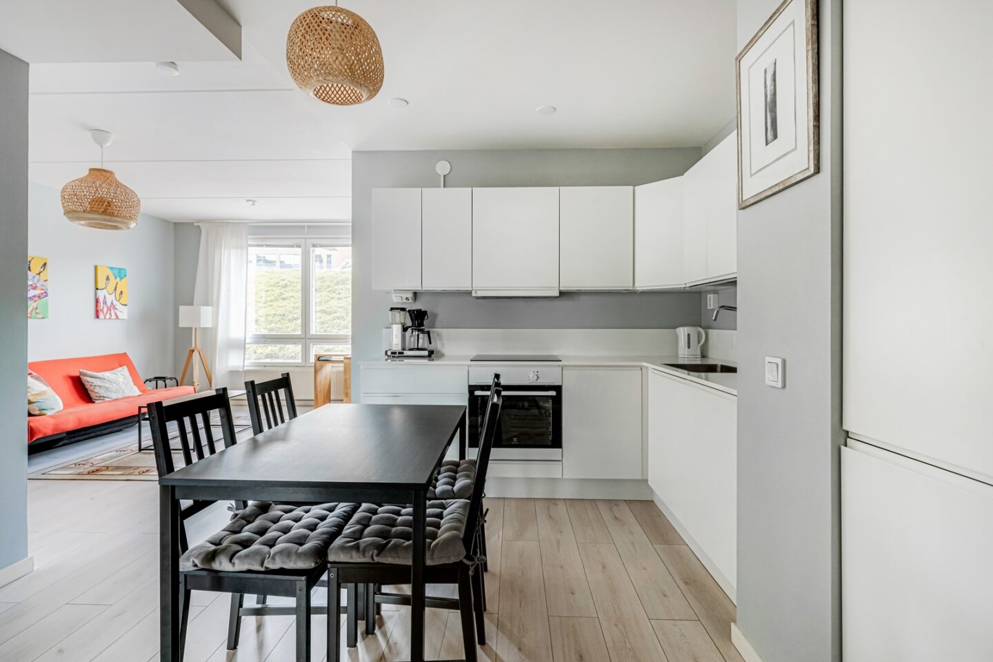 Kalasataman ja Teurastamon monipuoliset palvelut sekä Suvilahden tapahtuma-alue ovat kävelyetäisyydellä, samoin Mustikkamaan ulkoilureititja Korkeasaari. Sörnäisten rantatien ja Hämeentien bussit sekä Metro vievät nopeasti Helsingin keskustaan.