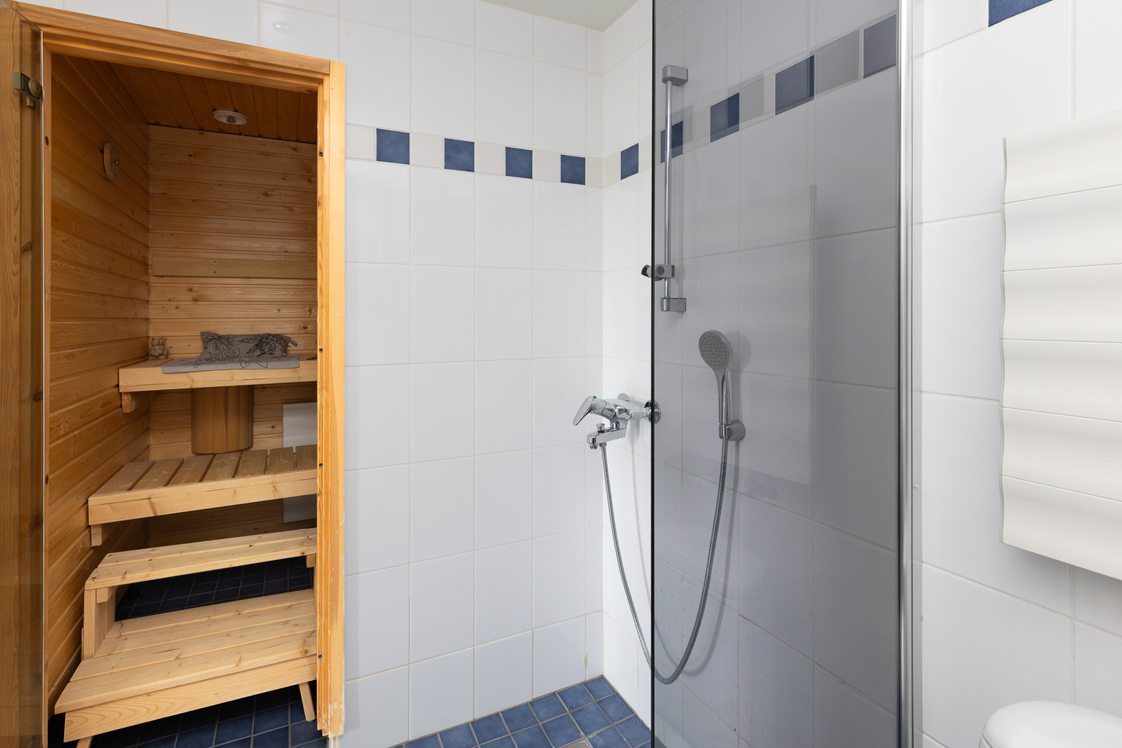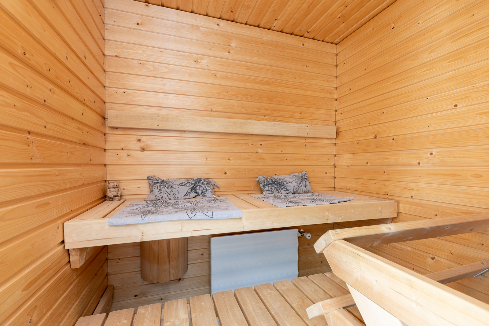| Saunan kuvaus | Seinät (puu), lattiat (laatta), Sähkökiuas |