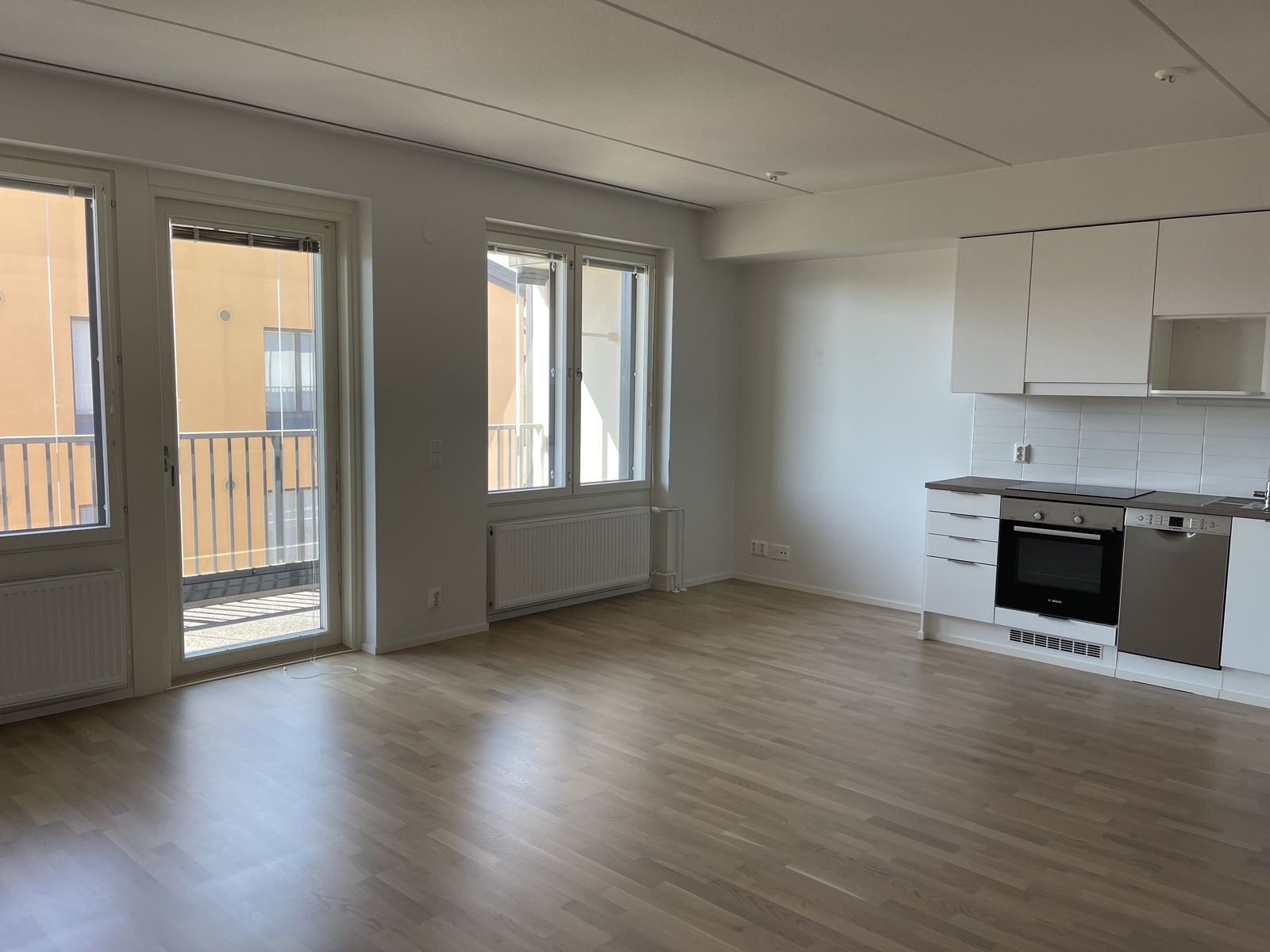 Keittiö on täysin varusteltu ja tarjoaa runsaasti kaappitilaa sekä työskentelytilaa ruoanlaittoon. Modernit kodinkoneet tekevät arjesta sujuvaa ja mukavaa. Tilava olohuone tarjoaa runsaasti tilaa rentoutumiseen, ja voit helposti sisustaa sen omien toiveidesi mukaisesti.