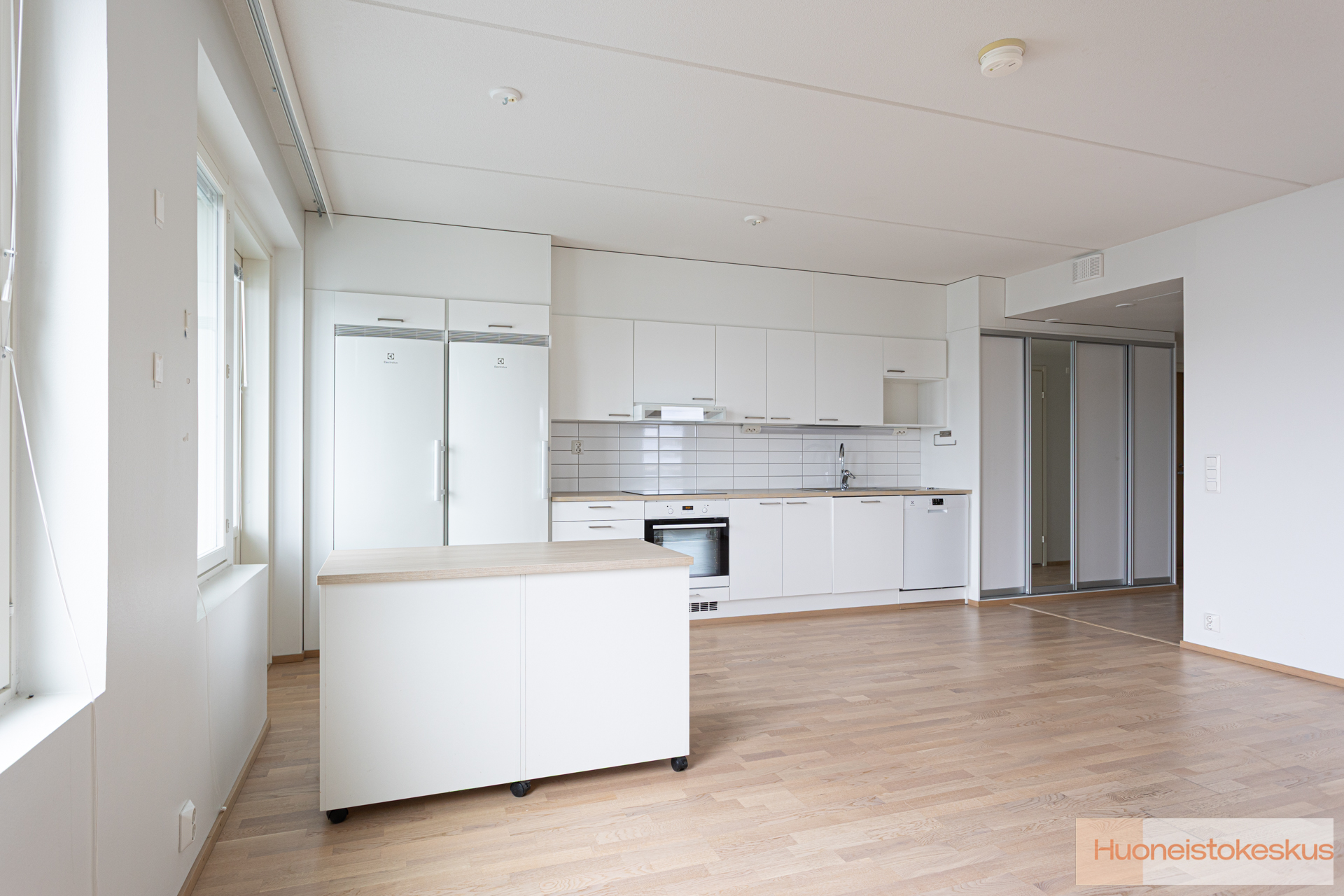 Asunto on kolmannessa kerroksessa ja siinä on lasitettu länsiparveke, josta voi nauttia ilta-auringosta. Tilava olohuone ja kahden makuuhuoneen ratkaisu tekevät tästä kodista ihanteellisen pienelle perheelle. Keittiö on hyvin varusteltu, ja siellä on muun muassa erillinen uuni ja siirrettävä keittiösaareke. Asunnossa on lattialämmitys, mikä lisää mukavuutta erityisesti talvikuukausina ja oma sauna tuo luksusta arkeen.