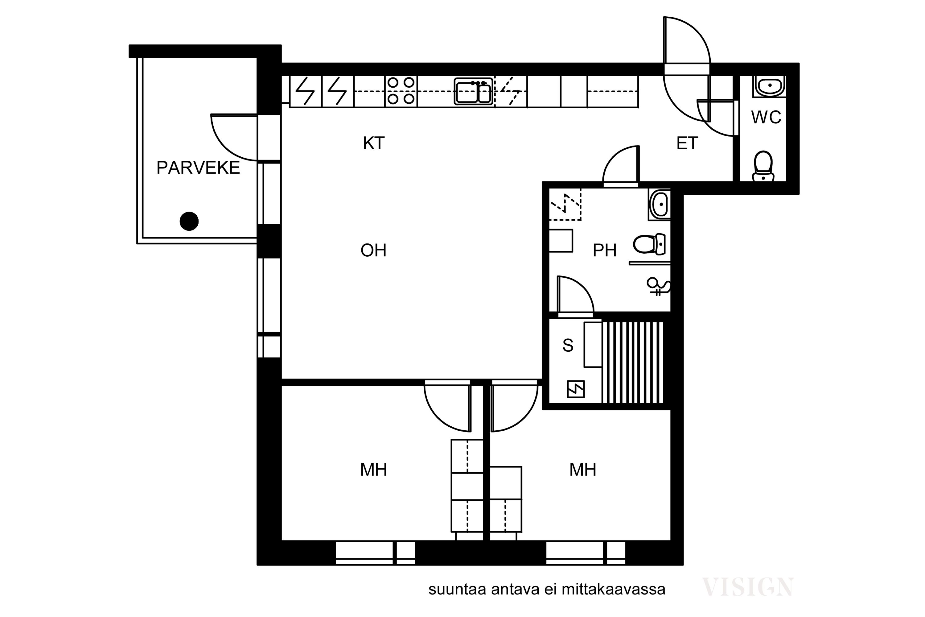 | Huoneistoselitelmä | 2mh,oh,k,kph,s,wc,lasitettu parveke |