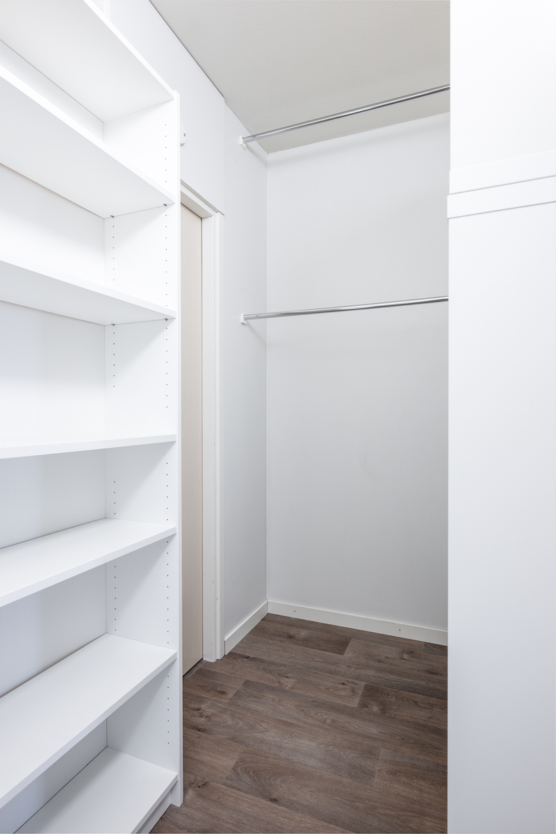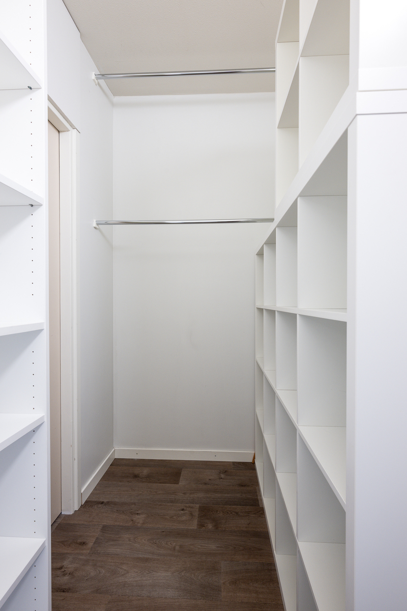 Makuuhuone tarjoaa rauhallisen levähdyspaikan ja vaatehuone lisää säilytystilaa.