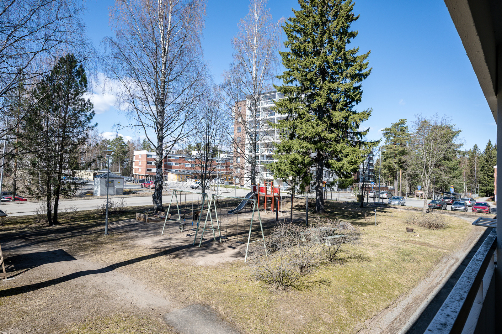 Asunnon parvekkeelta voit nauttia ulkoilmasta ja pihamaisemista.