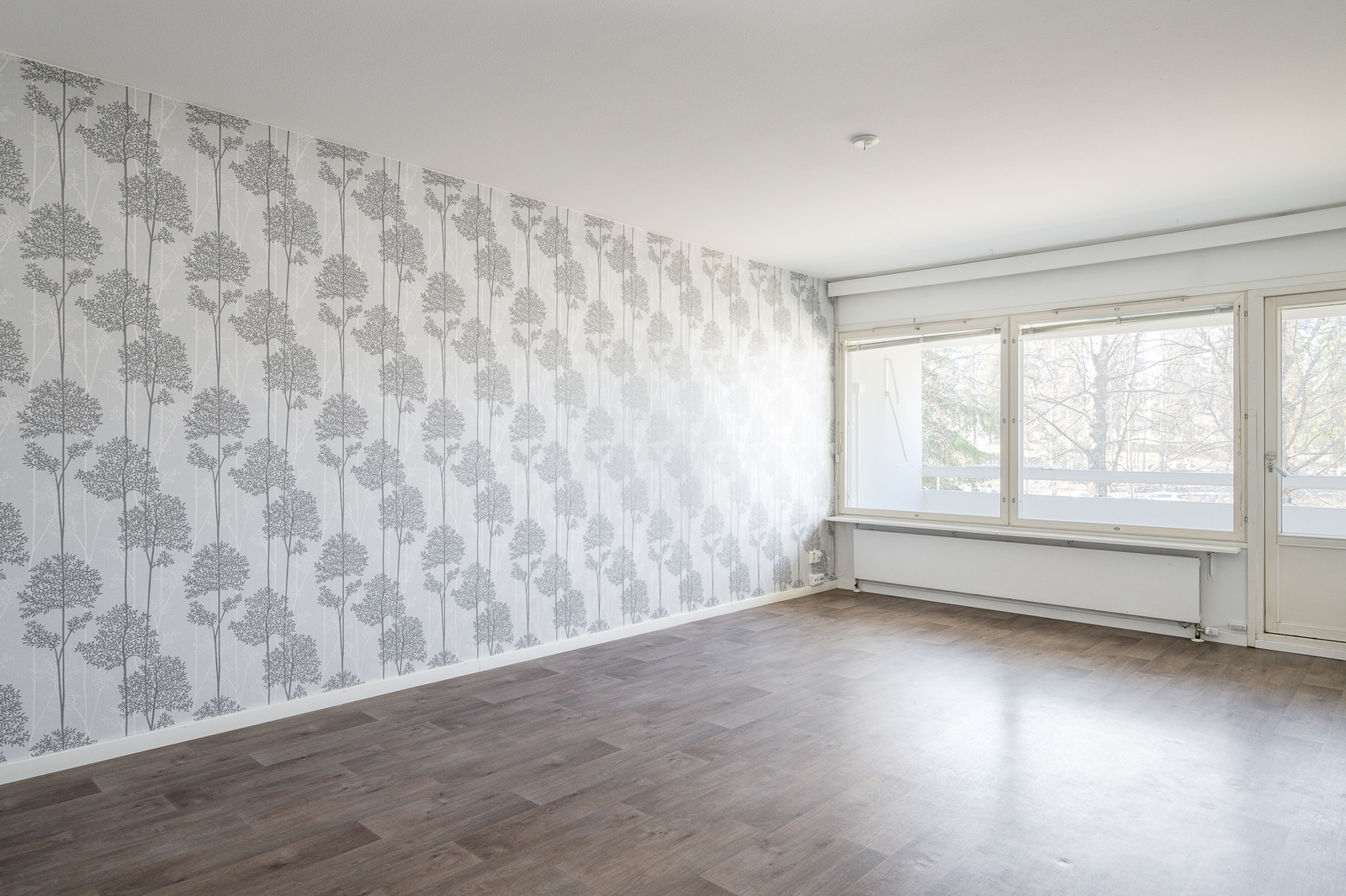 | Olohuoneen kuvaus | Seinät (tapetti ja maali), lattiat (vinyyli) |