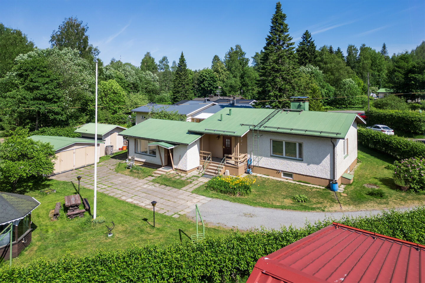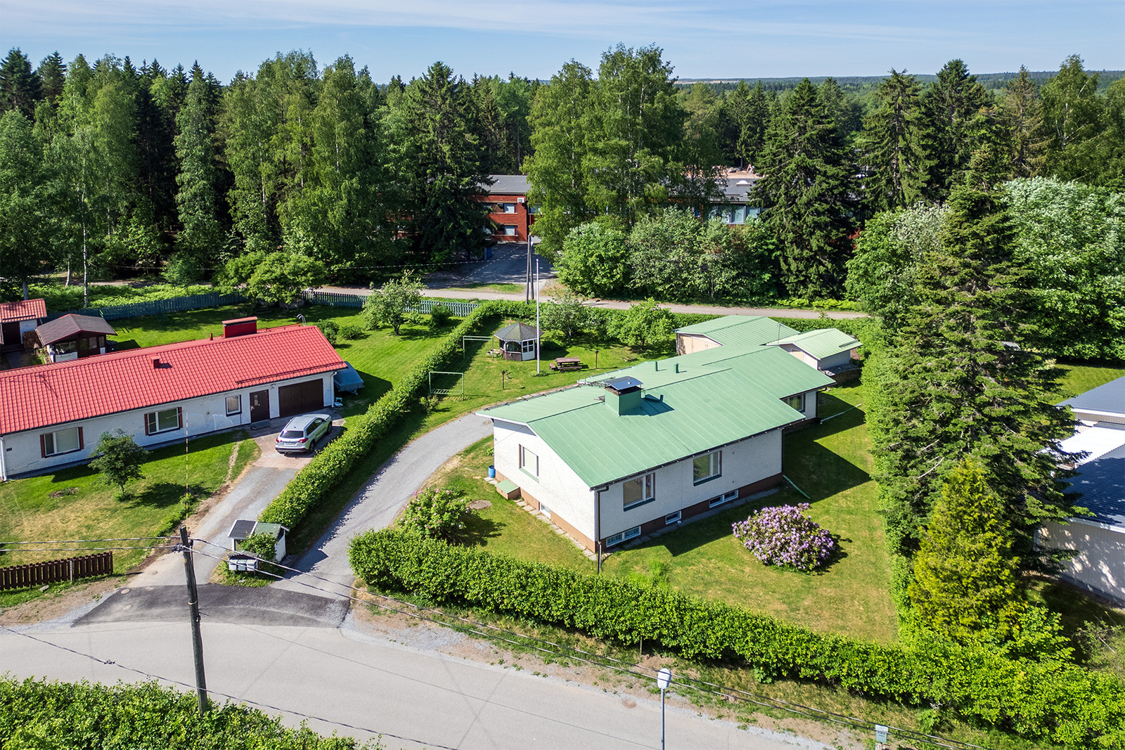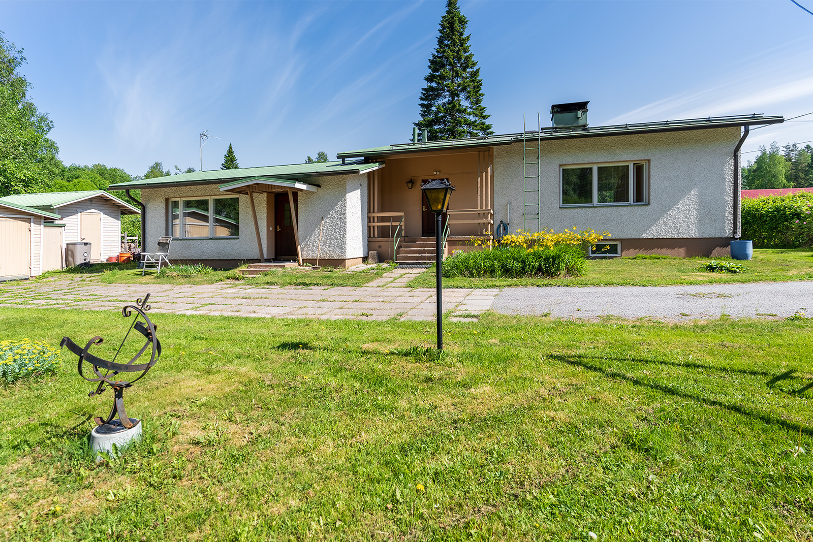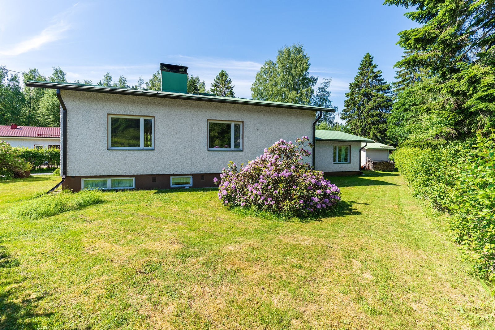 Vuonna 1963 rakennetulla ja 1975 laajennetulla omakotitalolla on oma vehreä tontti.