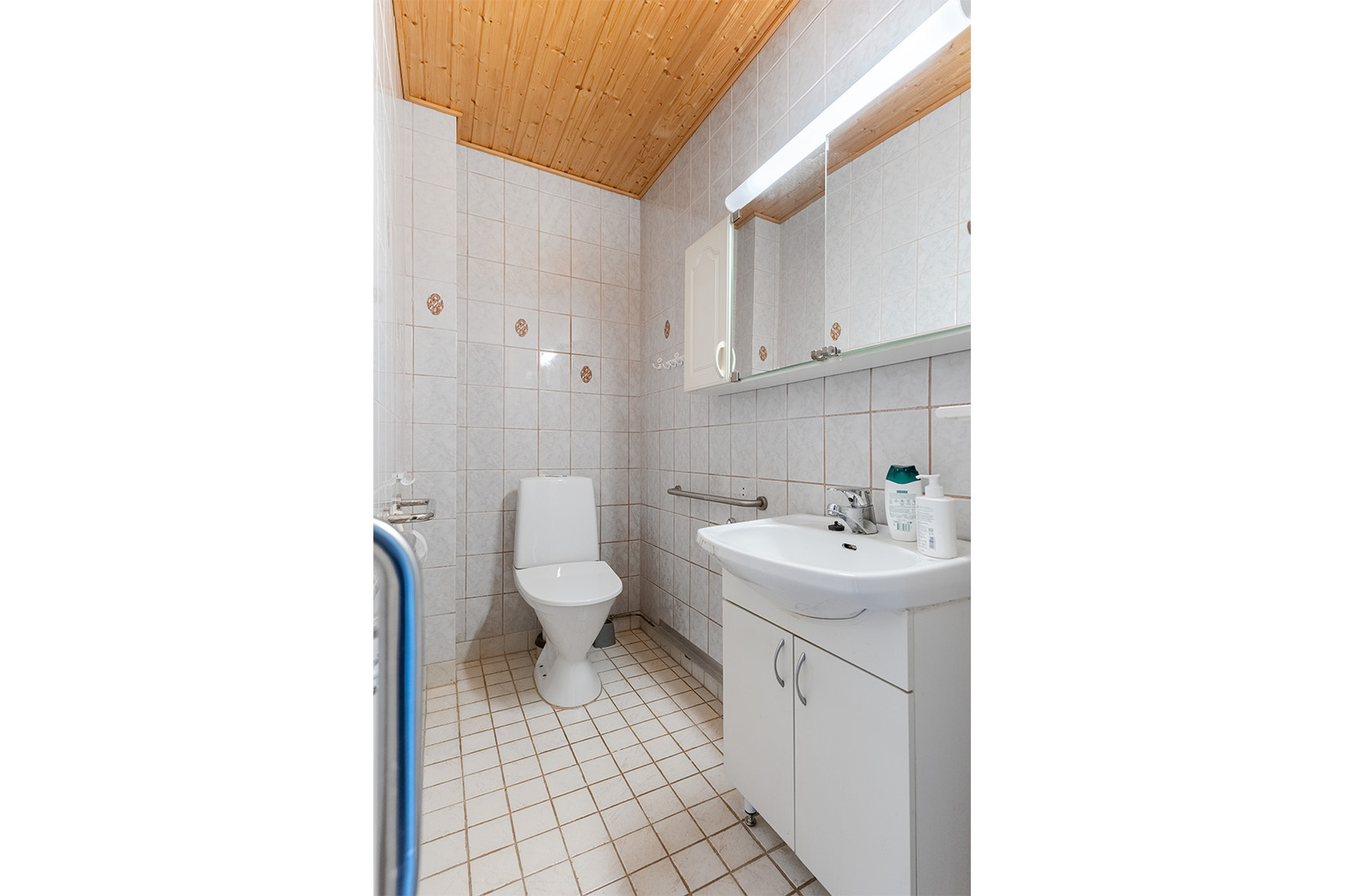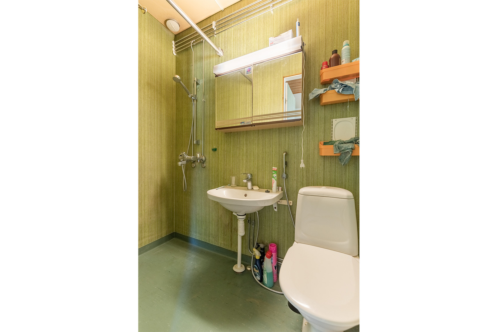 | Kylpyhuoneen kuvaus | Suihku, pesukoneliitäntä ja kiinteät valaisimet, seinät (kaakeli), lattiat (laatta) |