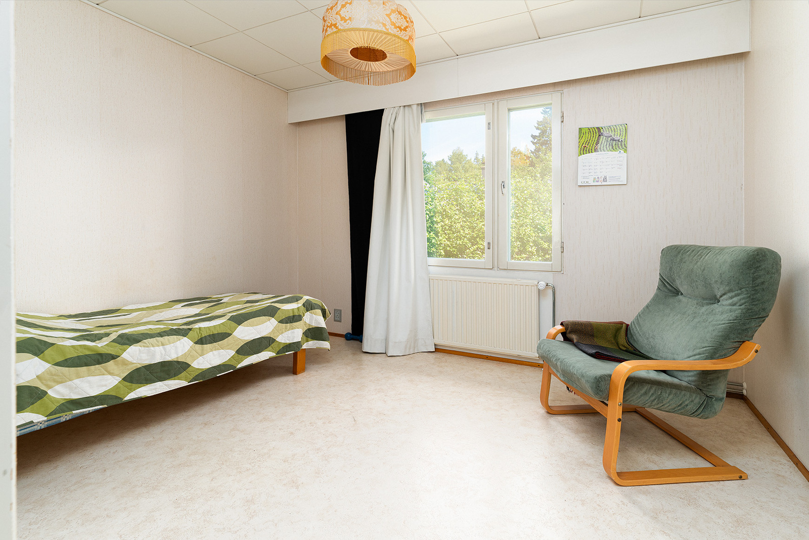 | Makuuhuoneen kuvaus | Lukumäärä: 4, seinät (tapetti), lattiat (muovimatto) |