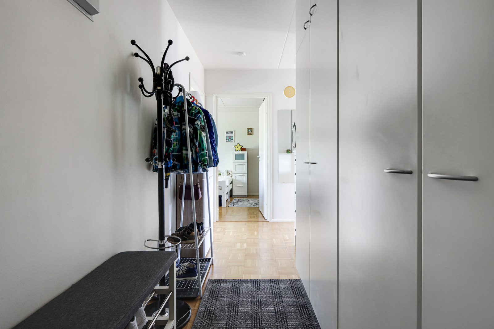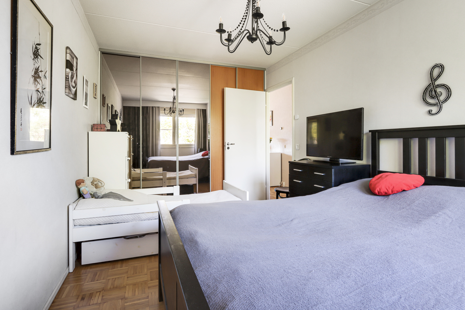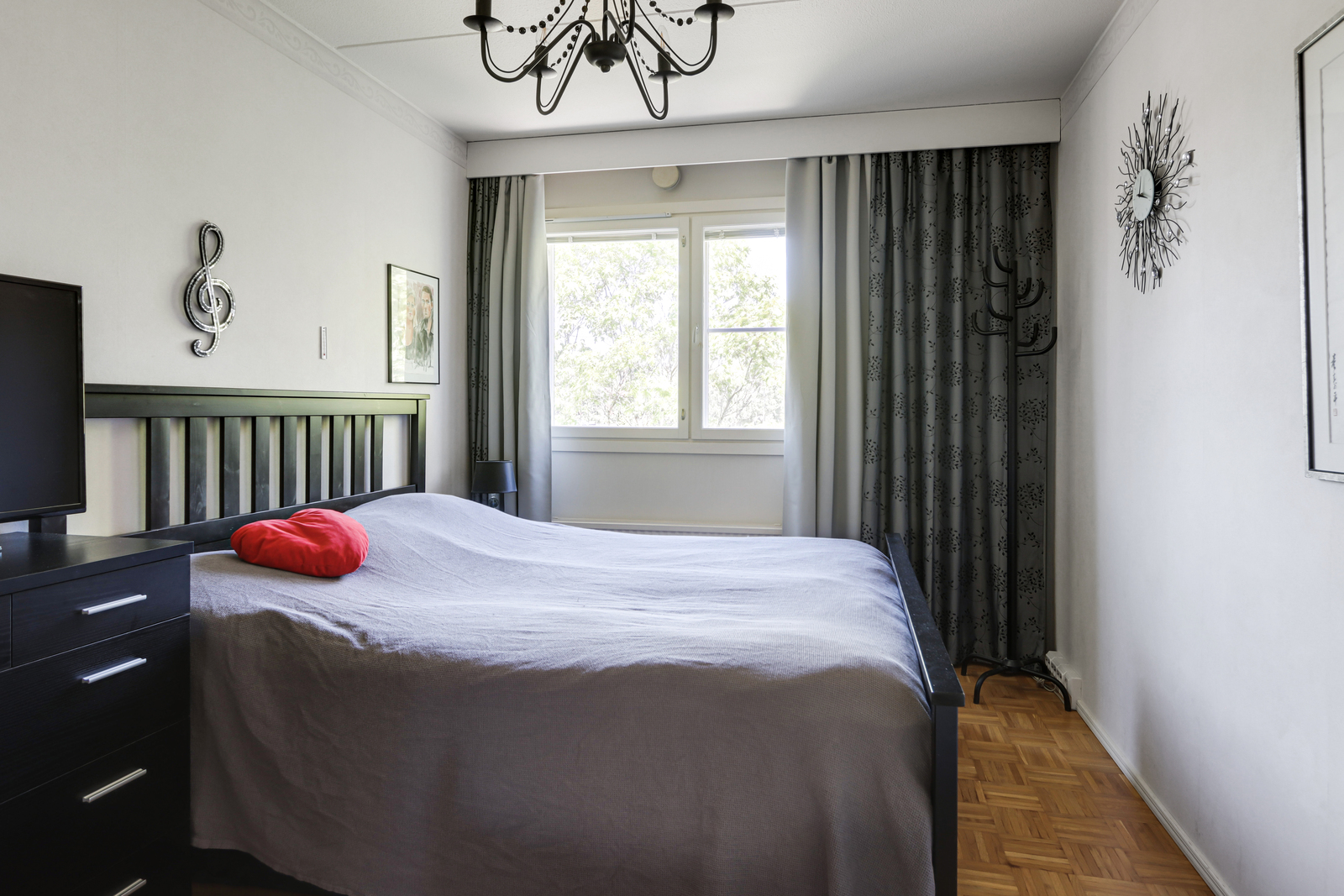 | Makuuhuoneen kuvaus | Seinät (tapetti), lattiat (parketti) |