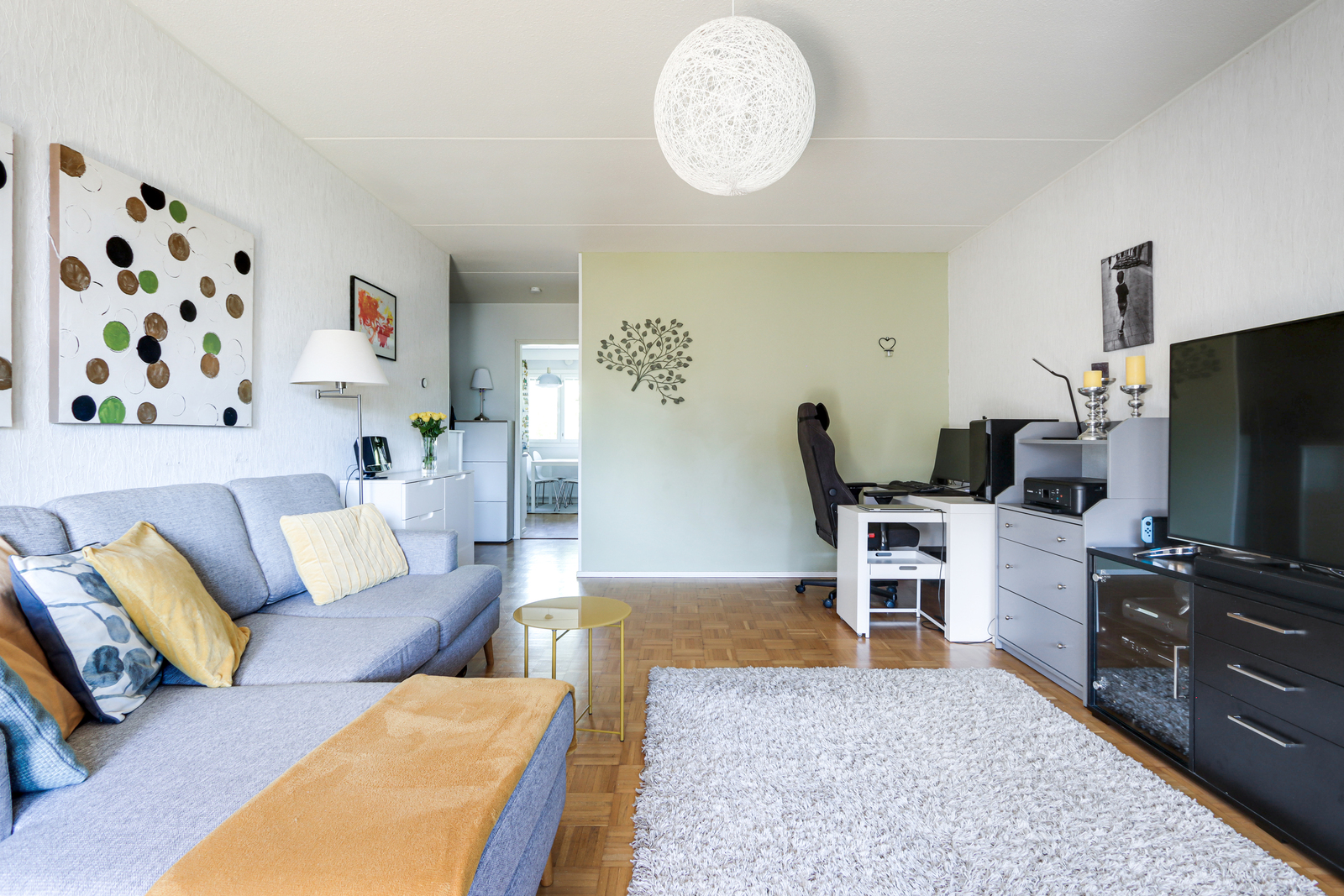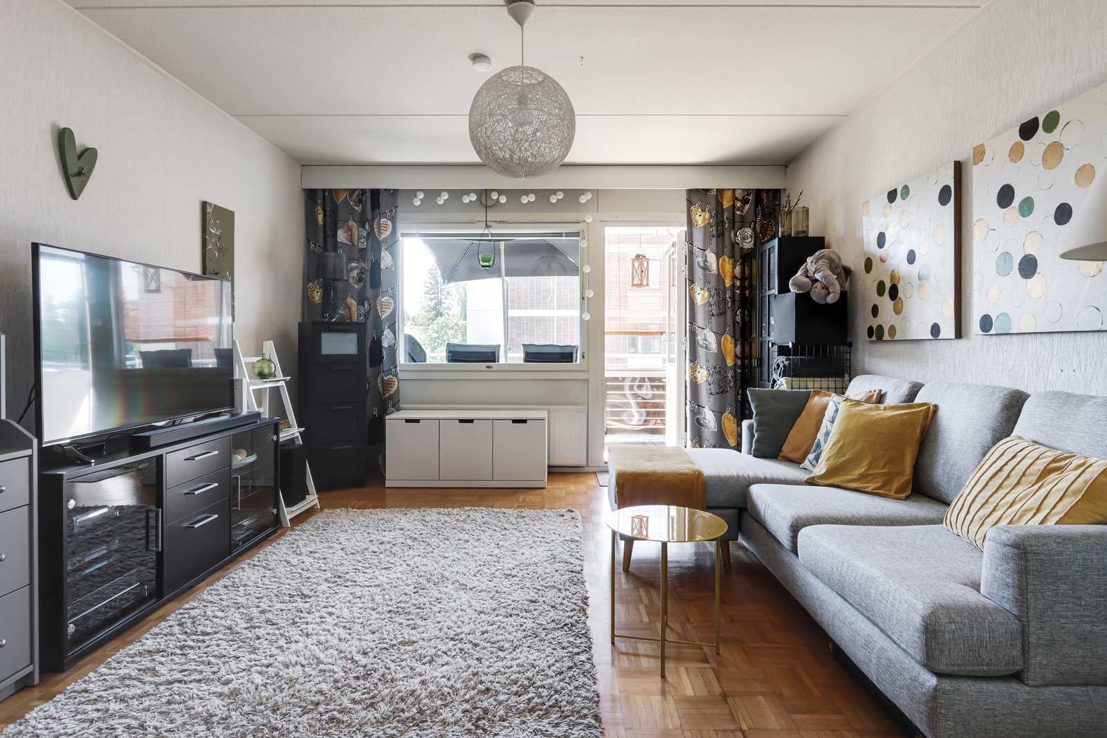 | Olohuoneen kuvaus | Seinät (tapetti ja maali), lattiat (parketti) |