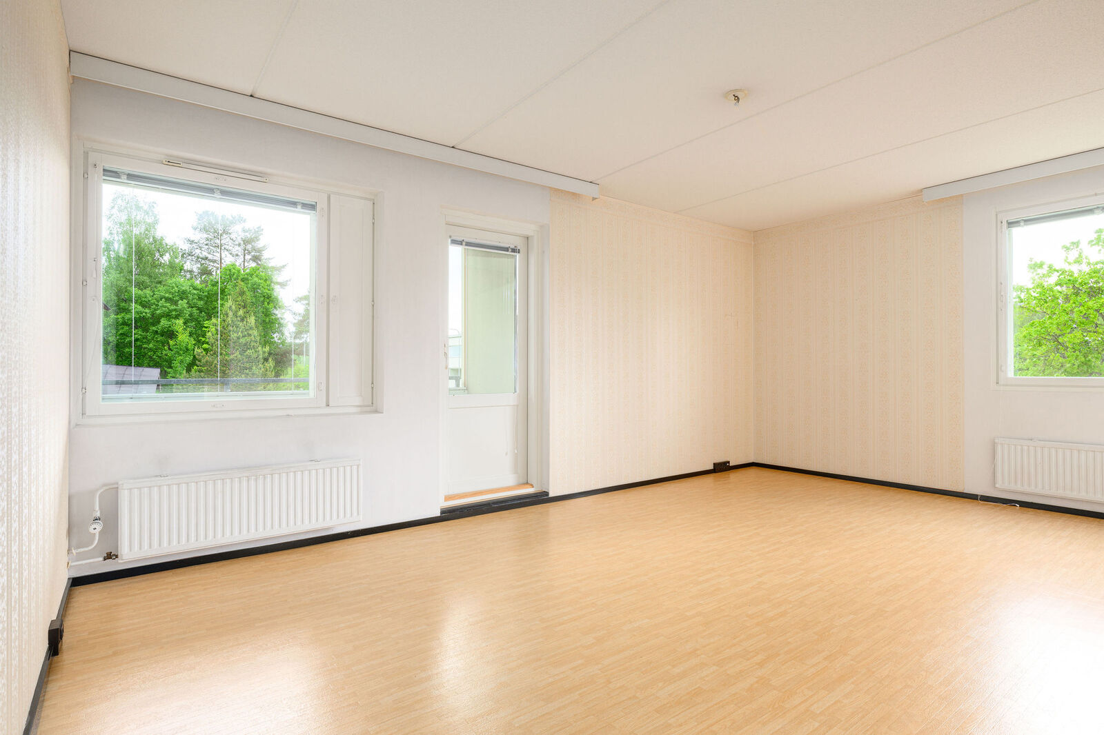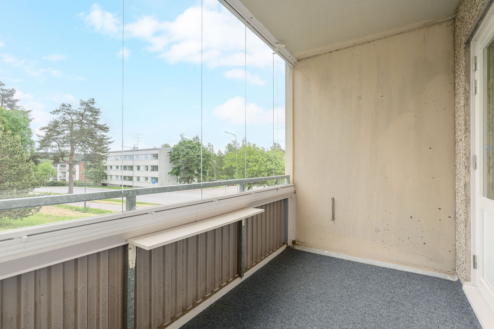 Toimiva pohjaratkaisu tarjoaa avaran olohuoneen, erillisen keittiön ja tilavan makuuhuoneen, jotka mukautuvat moneen tarpeeseen. Asunto sijaitsee toisessa kerroksessa, joten näkymät ovat mukavan vehreät ja valo tulvii sisään.