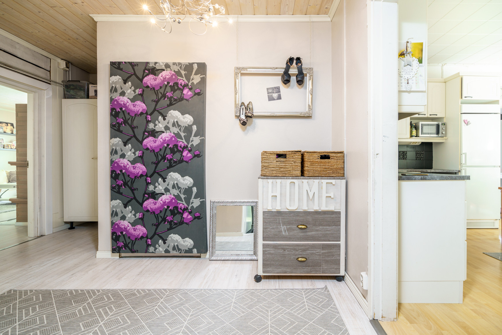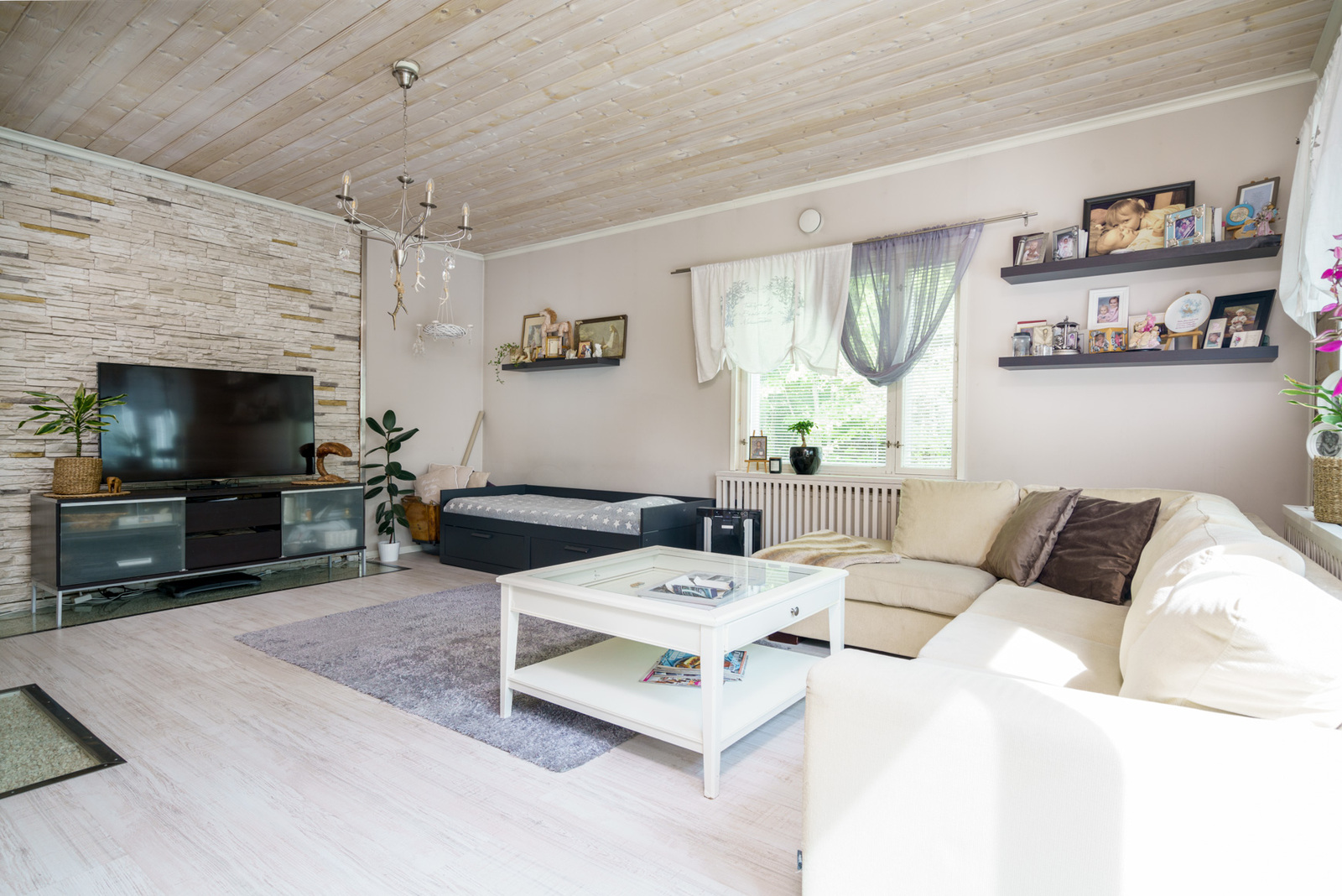 | Olohuoneen kuvaus | Seinät (puu), lattiat (laminaatti) |