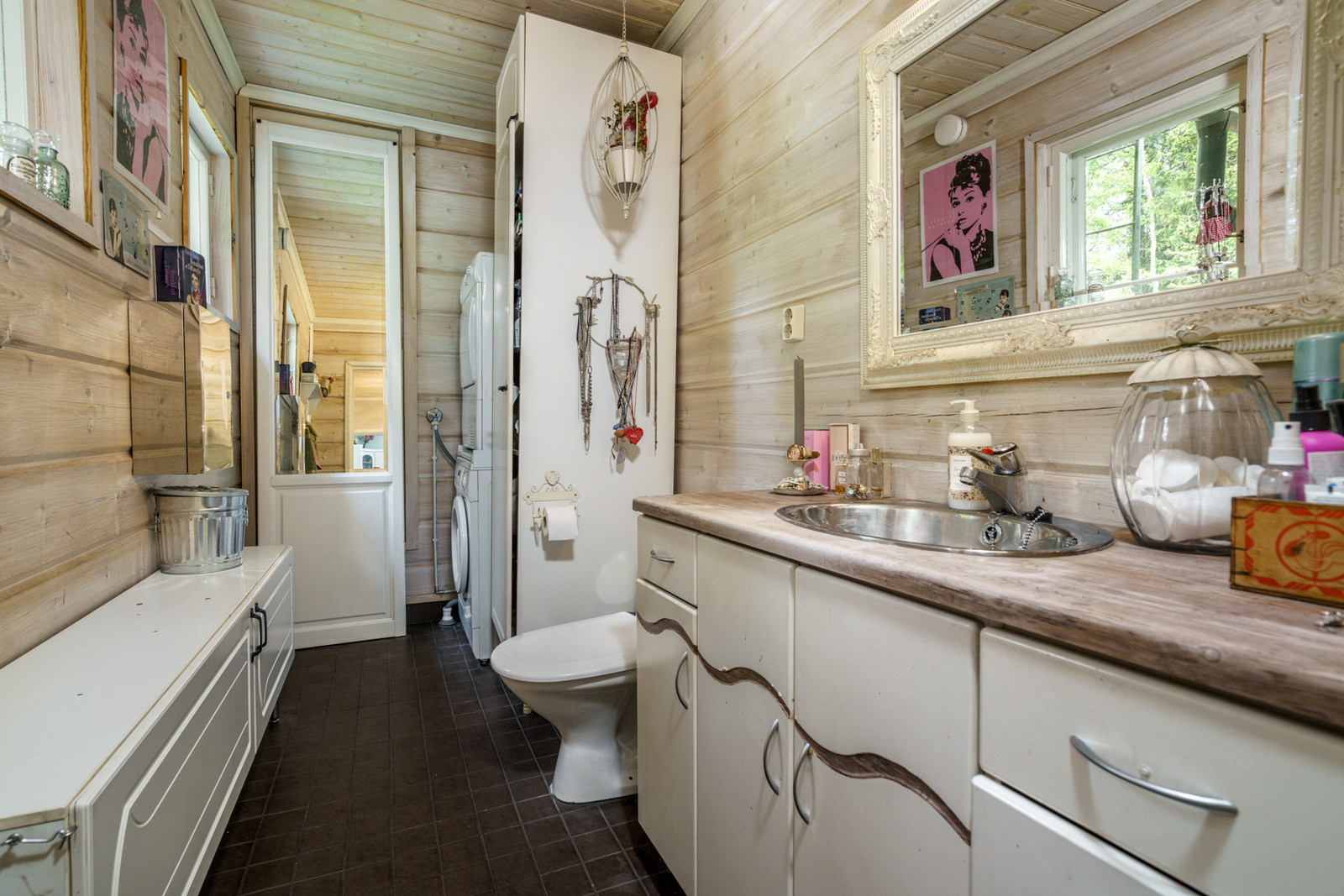 | WC-tilojen kuvaus | Lukumäärä: 1, Pesukoneliitäntä, seinät (Puu), lattiat (Laatta) |