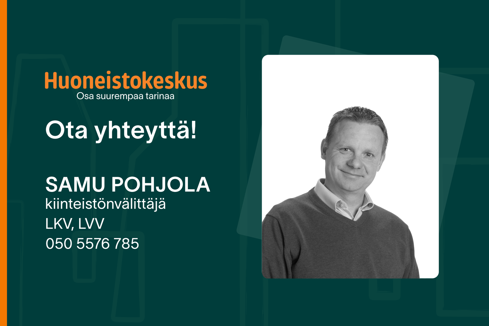 Ota yhteyttä, niin sovitaan esittely: Samu Pohjola, 050-557 6785, samu.pohjola@huoneistokeskus.fi