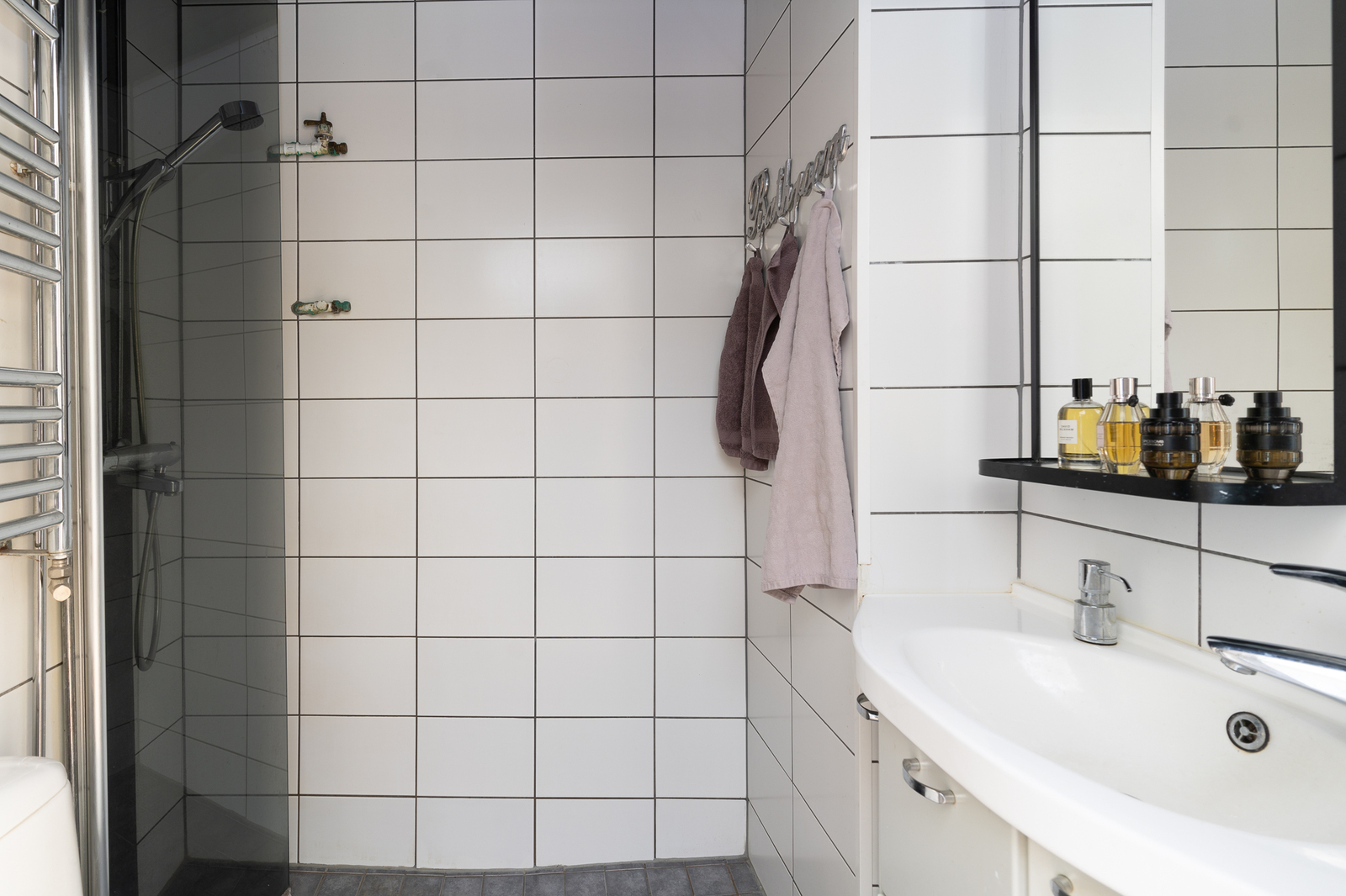 | Kylpyhuoneen kuvaus | Suihkukaappi, wc-istuin, suihku ja kiinteät valaisimet, seinät (kaakeli), lattiat (laatta) |