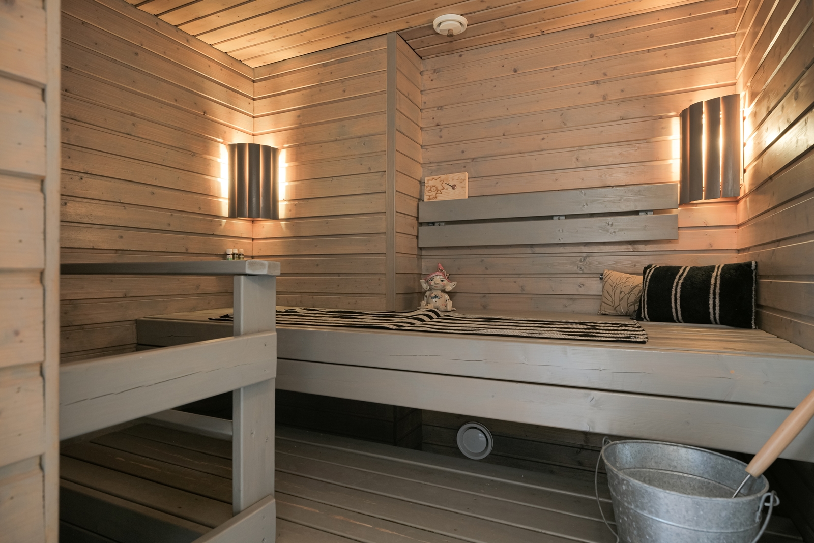 Talossa on kuusi makuuhuonetta, olohuone, keittiö, sauna, kodinhoitohuone sekä kirjasto ja aula, jotka tarjoavat runsaasti tilaa koko perheelle. Olohuoneen varaava takka luo tunnelmaa ja tuo lämpöä viileneviin iltoihin. Keittiössä on modernit varusteet, kuten induktioliesi ja astianpesukone, jotka tekevät arjesta sujuvaa.