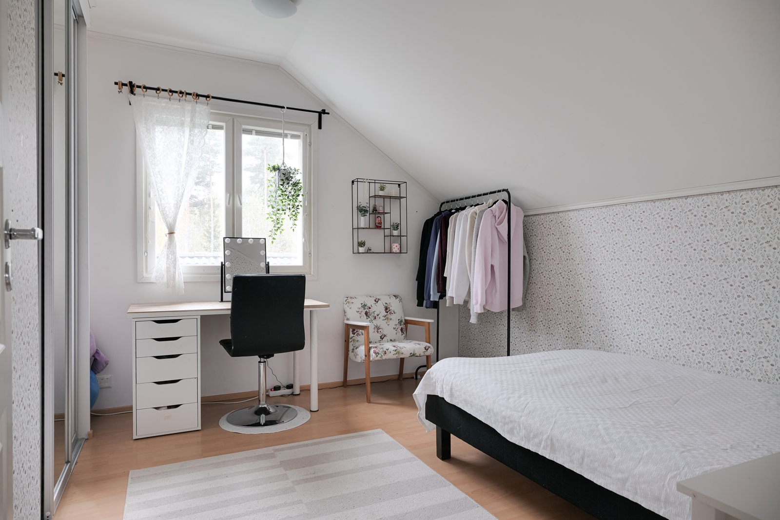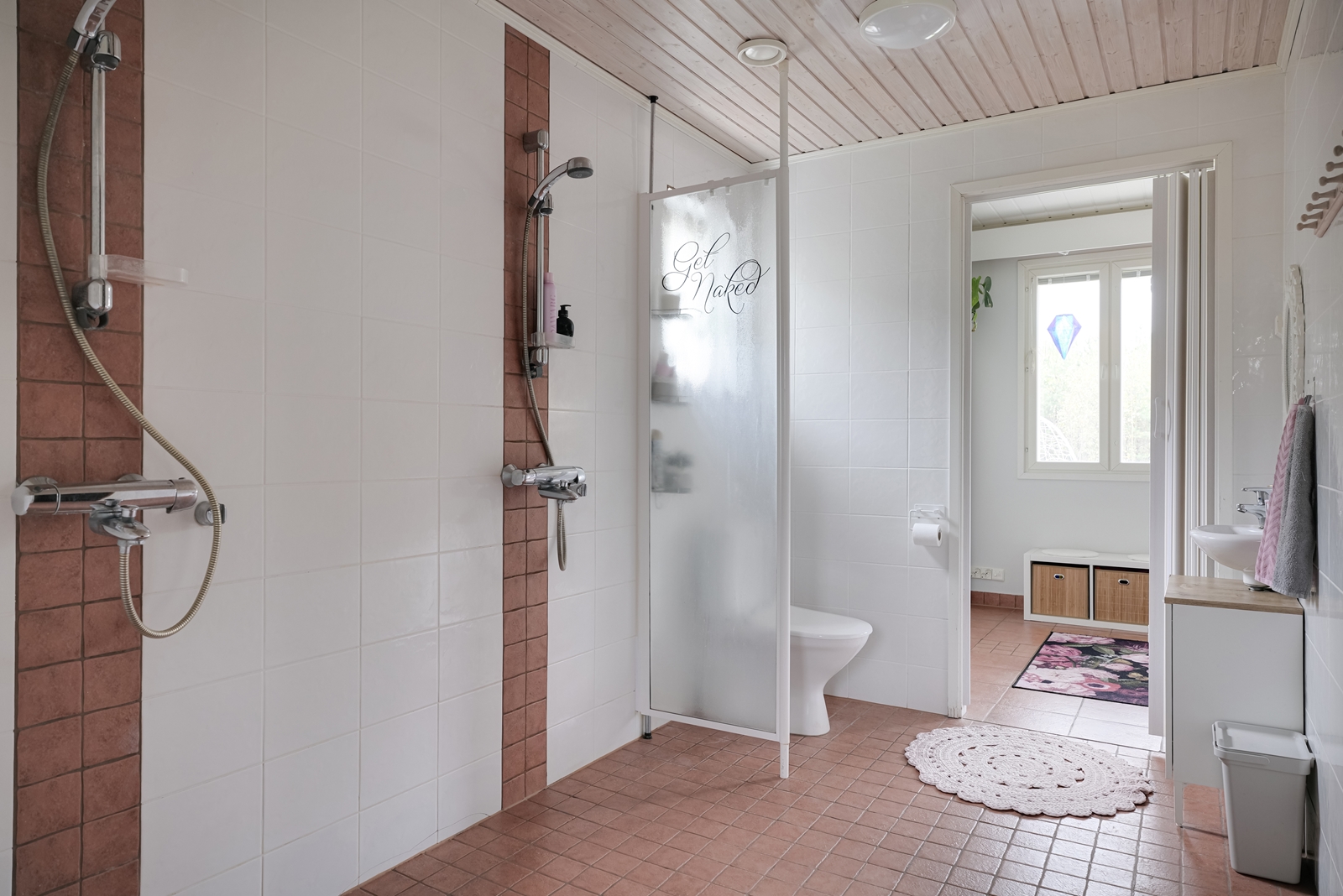 Kolme erillistä wc:tä ja tilava kodinhoitohuone, jossa on oma uloskäynti, lisäävät asumismukavuutta. Saunaosasto tarjoaa rentouttavat löylyt sähkökiukaalla. Lisäksi talossa on lämmin ulkovarasto ja terassi, jossa voit nauttia kesäpäivistä. Ison pihan nurmialue mahdollistaa monenlaisen harrastamisen ja vaikka jalkapallon pelaamisen.