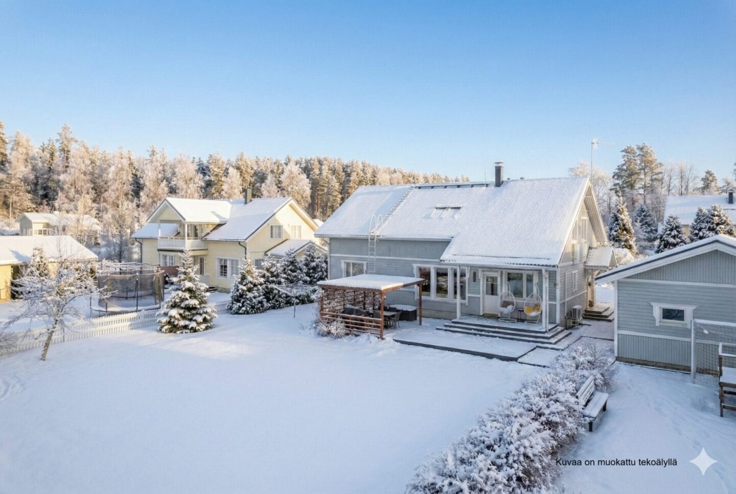 | Muut rakennukset | Autokatos ja leikkimökki. Autokatoksen kerrosala 22m2 |